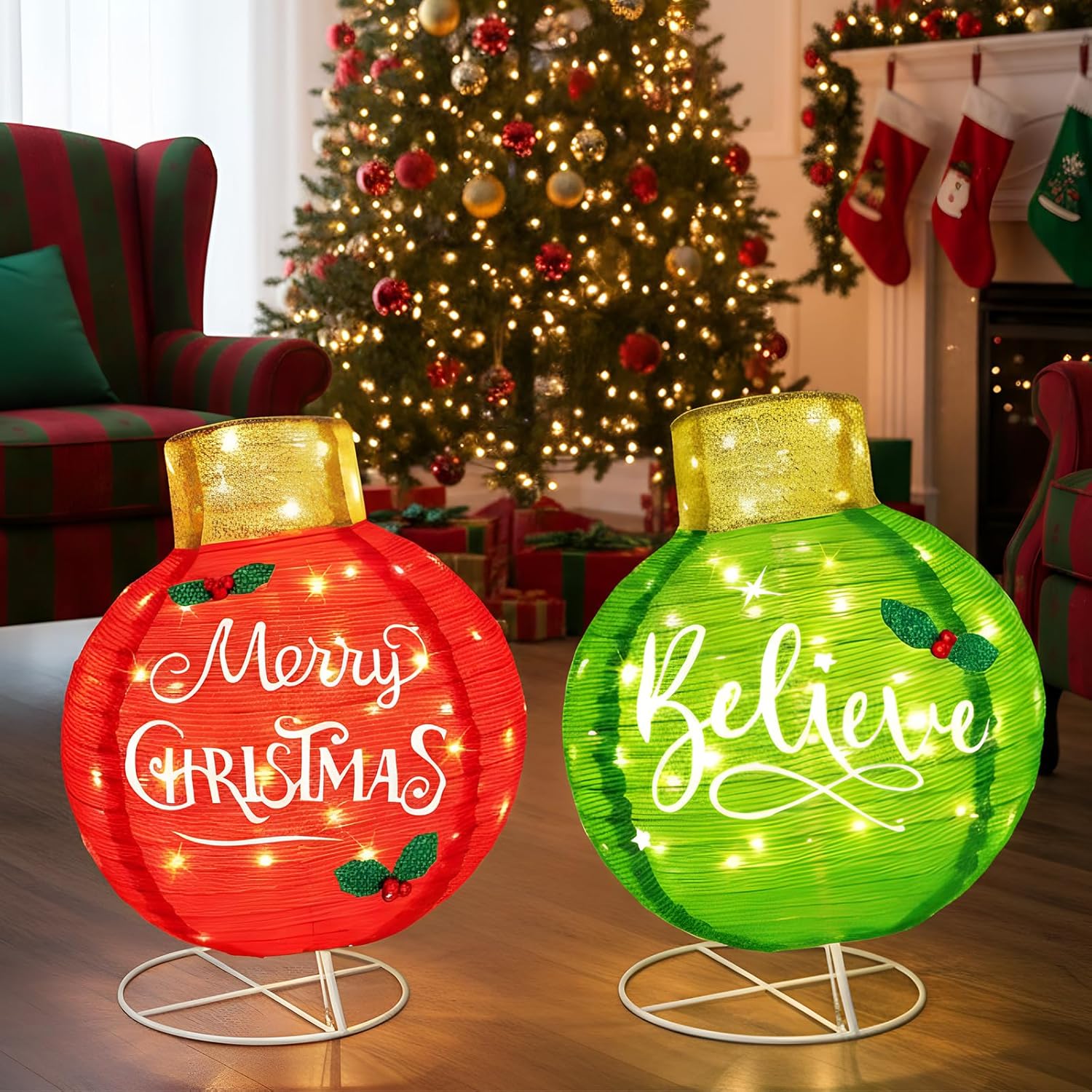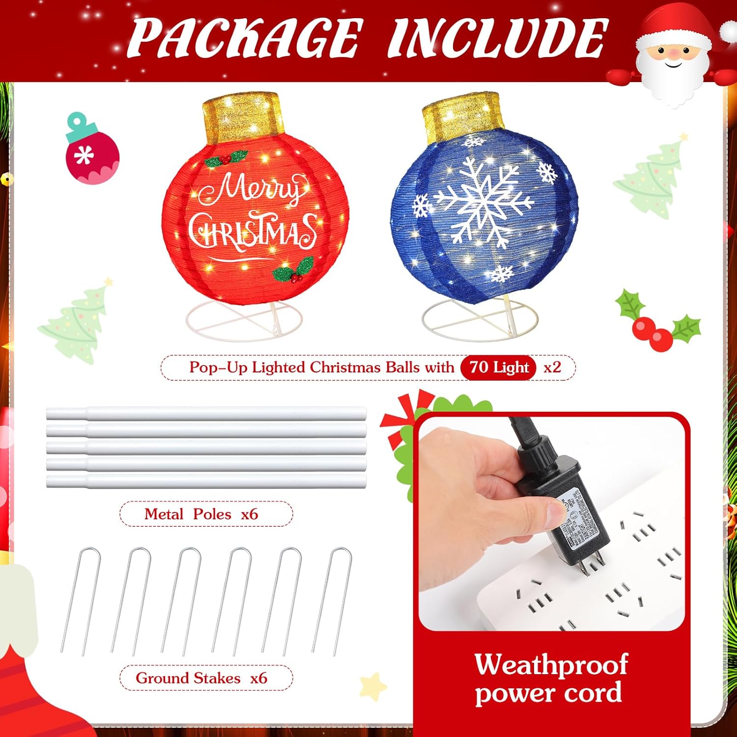 Features: Each of our decorative balls has a different pattern, you can use them as decorations for Christmas theme parties to attracting other people's attention and live an unforgettable memory, let your yard full of festive atmosphere Specifications: Material: flash cloth Color: red, blue Size: 19.7 inches Package includes: 2 x Christmas ball decorations Notes: Manual measurement, please allow slight errors on size. The color may exist a slight difference due to different screen displays
