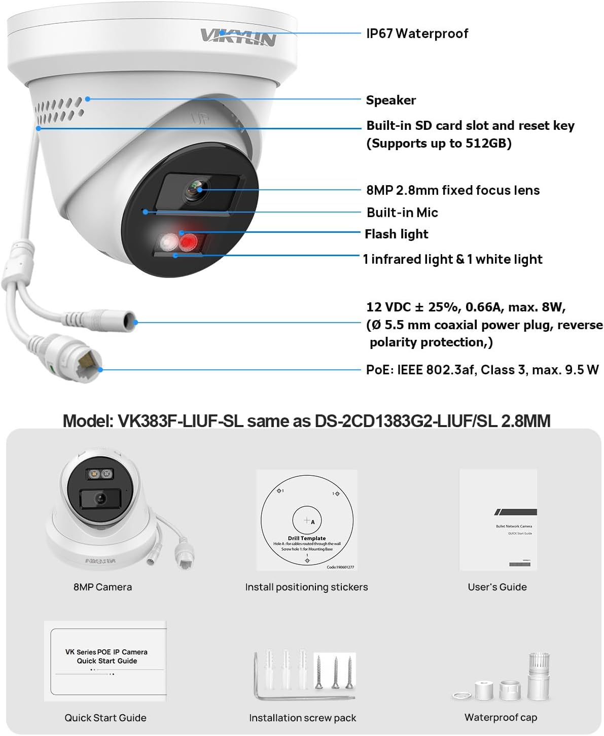 | Model Name | 8MP Poe IP camera double active deterrent VK383F-LIUF-SL |