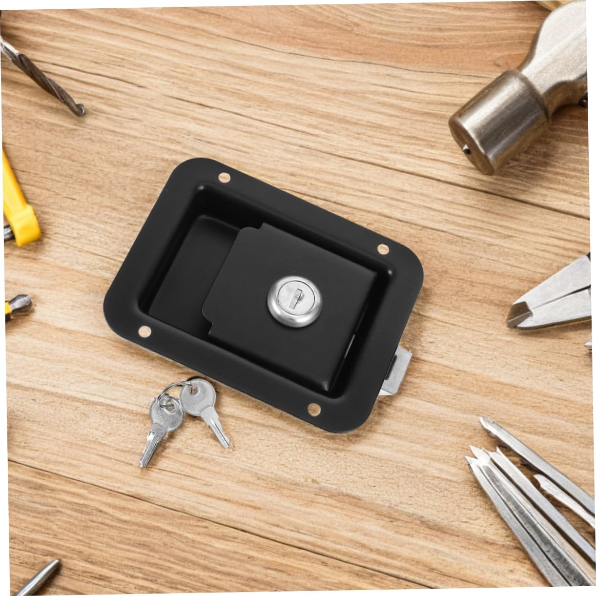 DescriptionWhether you're a or an RV enthusiast, this is an essential accessory for securing your vehicle's compartments. Its durable construction and user-friendly design make it a practical and reliable choice for anyone looking to keep their tools and equipment safe and secure.Features-Color:Black-Material:Stainless Steel-Size:12.00X9.00X3.50cm/4.72X3.54X1.38in-Exceptional durability: constructed with materials for performance and reliability-Broad utility: suitable variety of applications including trailers, specialty vehicles, and automotive toolboxes-Quick installation: easy to install with no need for tools or technical expertise-Dependable security: provides a secure locking mechanism to protect your valuable items-Compact and stylish: combines a compact structure with an elegant design, enhancing your vehicle's overall look