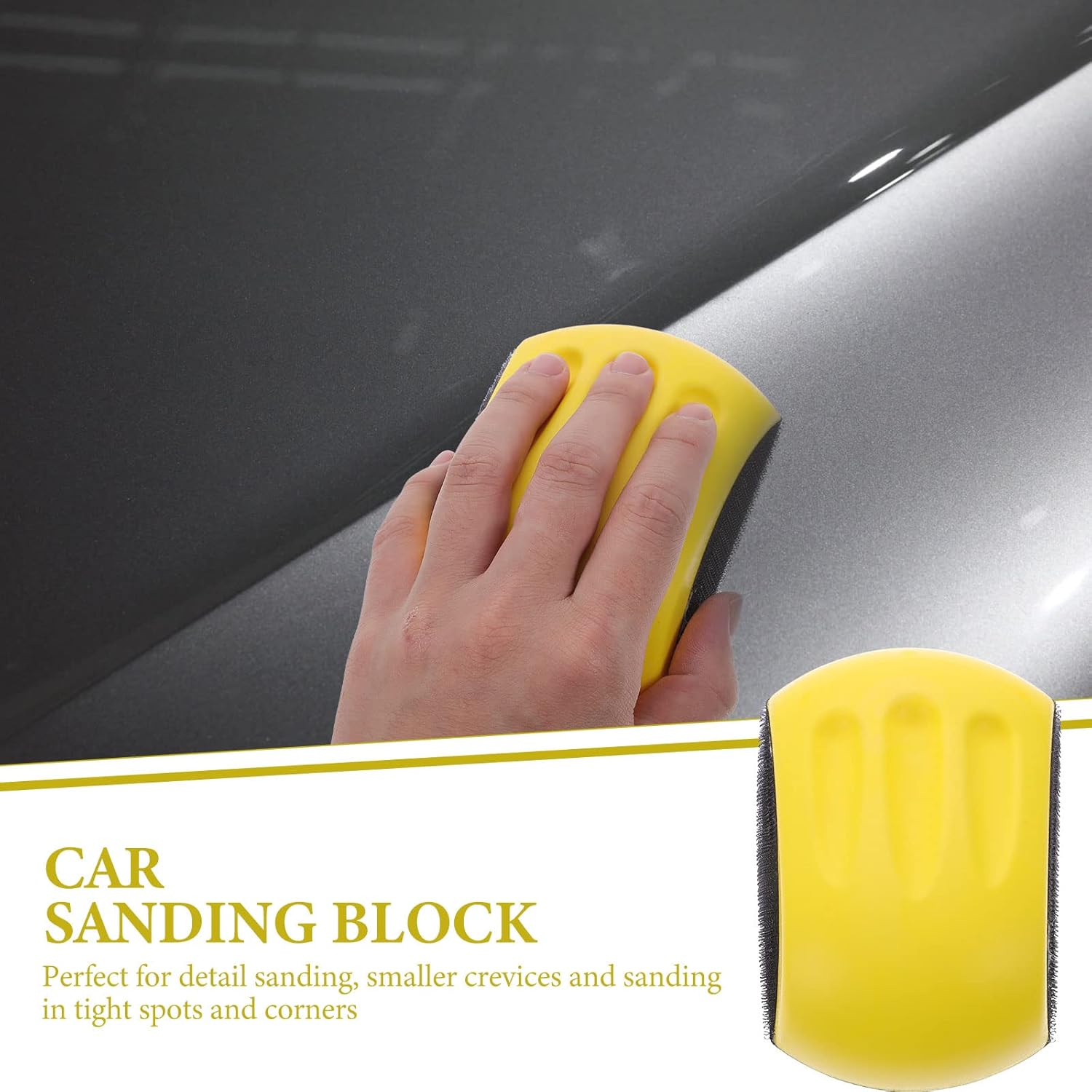 Description This is a hand sanding block which is proper for woodworking, hobby, arts and crafts, auto body, drywall use. Made of ABS materials, safe and durable, to dampen the vibration. Design with easy to hold handle and a flat bottom to bring much more convenience to your work. Features - Color: yellow. - Material: ABS. - Size: 12.50X8.00X4.40cm/ 4.91X3.14X1.73inch. - This product is manufactured with ABS material, safe and durable for long time use. - changes with the unique design, can prevents pad shifting, and allow for easy removal of the abrasive disc. - Designed with a flat bottom, use for wet and dry sanding, easy fast replacement of discs. - Mouse shape, this sanding block is easy to use, grip and convenient to store. - for detail sanding, smaller crevices and sanding in tight spots and corners. Package Including 1 x Hand Sanding Block
