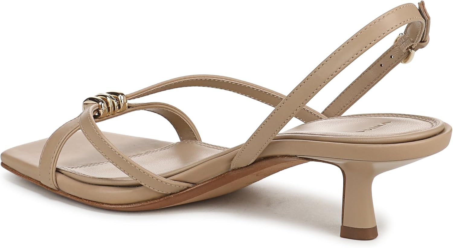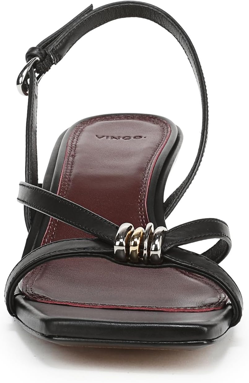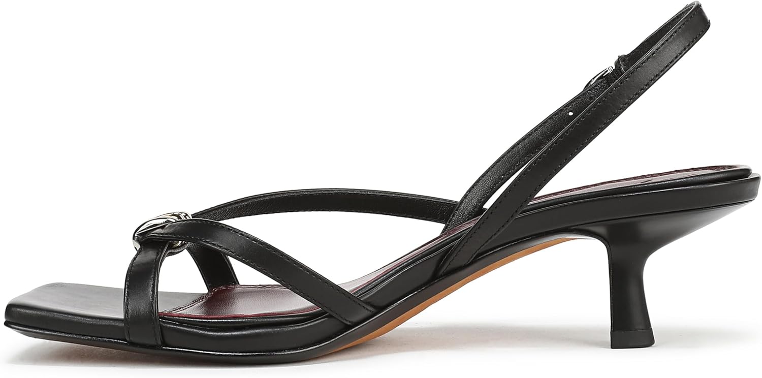 Styled with a kitten heel for a touch of height, the pared-back silhouette of these women’s slingbacks allows the artisanal metal embellishment to shine. Leather upper and lining. By purchasing this product, you are supporting responsible leather manufacturing through the Leather Working Group. Adjustable buckle closure. Open square toe. Kitten heel measures 1.75”. Professional clean only. Imported.