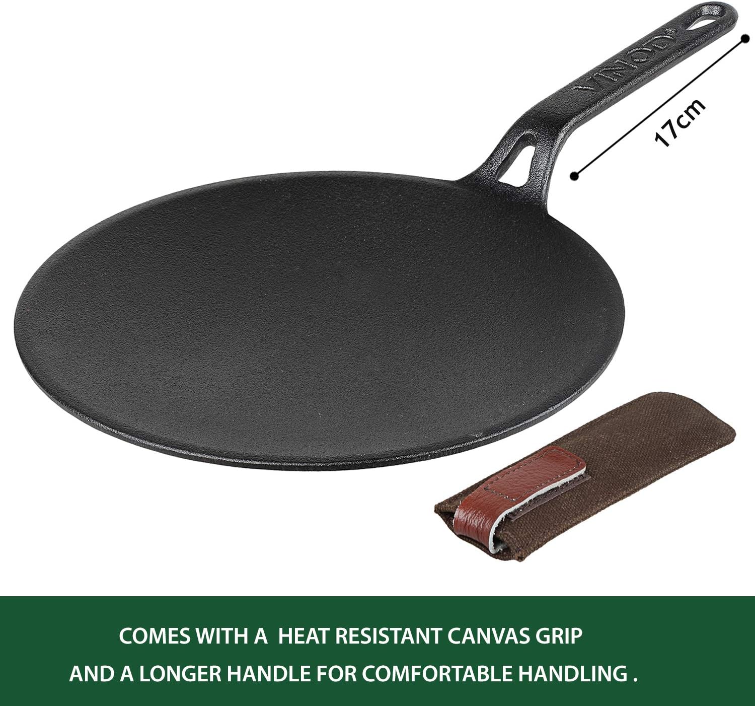 Vinod Legacy Pre Seasoned Cast Iron Flat Roti Tawa with Handle - 28 cm/Chapati, Dosa, Naan, Omlette Kallu Tava / 100% Pure Naturally Non Stick/Toxin & Rust Free/Gas Base