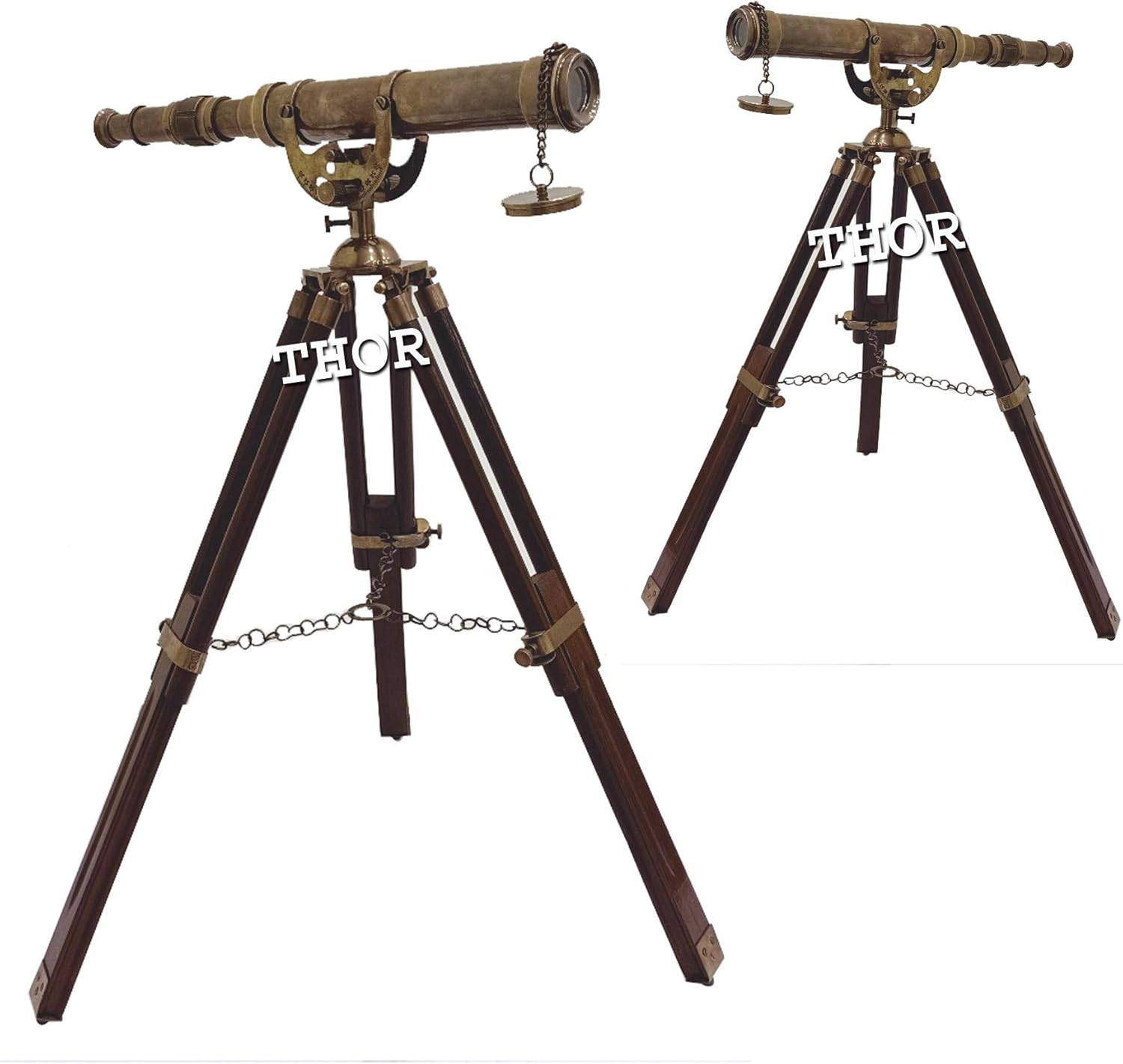 Vintage Antique Brass Telescope Nautical Wooden Table Tripod Stand Replica Gift