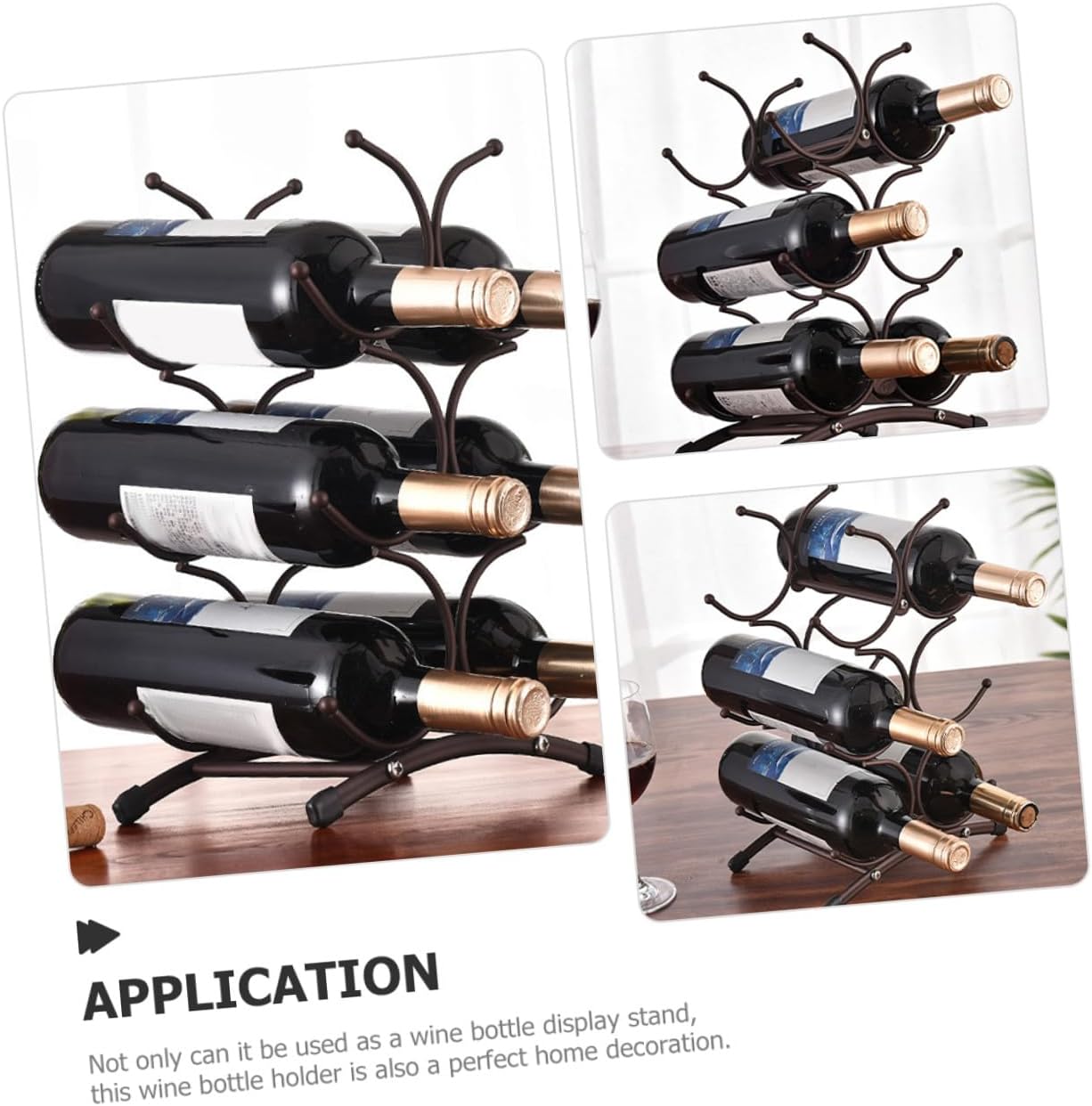Package Include 1 x Wine Rack Features - Size: 35.50X23.00X16.00cm/13.95X9.04X6.29in - Very suitable for interior decoration: parties, restaurants, cabinets, bars, kitchens, dining tables, etc iron wine bottle holder. -Product Info:Red wine rack - Material:Iron - Modern style design, this wine bottle holder can display your wine more completely suspended wine rack. - ColorDark Brown - Help you organize the wine bottles in the kitchen for easy storage, and keep your kitchen tidy bar wine rack. - This wine bottles rack is convenient and practical for lasting use. It can be used in daily life stylish wine bottle storage rack. - The edges are smooth and round, without burrs, and this wine bottle holder will not damage rack.Goods Descriptionwine bottle display holder Show your wine in a stylish style! This wine rack is the perfect centerpiece of your wine cellar or dining table.bottle display shelf Excellent workmanship with modern style design.table wine rack This stylish wine bottle rack is simple and can store wine bottles