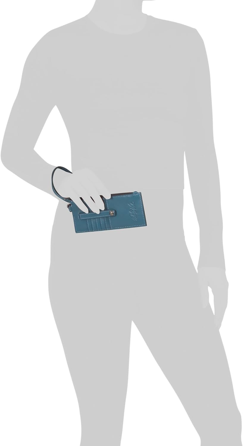Crafted in sumptuous Vintage Vegetable Tanned leather, the Alanna is a portable credit card wallet, perfect for tossing in your bag or carrying alone with its removable wrist strap. Snap closures keep your cards secure, while a zip pocket simplifies cash and coin storage. 100% full-grain leather interior features a main zip pocket, leather trim, and nylon lining. Exterior boasts 10 card slots, an ID window, embossed logo, and burned edge finish. Zipper and snap closures, signature brushed metal hardware, and heavy stitching ensure durability. Dimensions: 5 3/4"W x 3"H x 1/8"D. Wristlet strap drop: 6". Equipped with RFID-blocking protection.