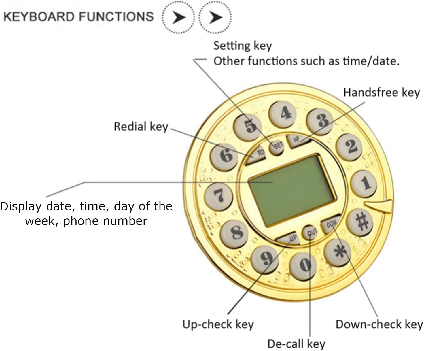 Unique and fun gift for family friend.perfect for Easter,Graduate,Birthday,Mother's Day,Valentine's Day,Thanksgiving Day,Christmas gifts. Features: No need for external power supply, no battery Work directly with the current on the telephone line Caller ID Retro ringtones The volume of the incoming call ringtone is adjustable Dial out the number to check number and time Look up and call back the caller number Electronic desk calendar, date, clock and week display One-touch redial Specification: Product Name: Home Landline Phone Material: Resin Style: Vintage Ringtones: Use Range: gifts, living room, bedroom bedside, study, hotel, home store, etc. Package List: 1 x Retro Telephone Warning: 1. Due to the different monitor and light effect, the actual color of the item might be slightly different from the color showed on the pictures. Thank you! 2. Please allow 1-3mm measuring deviation due to manual measurement.
