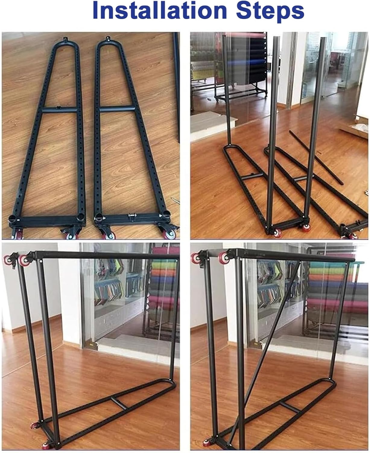 **Introducing our heavy-duty wall-mounted storage rack system, expertly designed for the optimal organization of vinyl films and fabric rolls. This versatile solution not only simplifies storage for crafting accessories but also enhances the organization of various belongings, allowing you to maintain an efficient and productive workspace.**Key Features:**- **Easy to Clean:** Simply wipe with a damp cloth to remove any dirt and keep your storage area tidy.- **Detachable Hanging Rod:** Easily hang and access items for convenience and efficiency.- **Adjustable Design:** Customize the distance between shelves to accommodate different storage needs.- **Compact Footprint:** Designed to occupy minimal space while maximizing organizational convenience in your home or workspace.- **360° Rotatable Wheels:** Effortlessly move the rack anywhere, making it simple to rearrange your space and maintain cleanliness.**Product Name:** Storage Rack **Material:** Metal Frame **Color:** Black **Assembly Required:** Yes **Features:** Snap-on design with adjustable spacing **Structure Type:** Bracket Structure **Applications:** Ideal for shopping malls, supermarkets, warehouses, garages, and car beauty shops**Package Includes:** Scarves Holder x 1**Description Notes:** - Please allow for a 1-2 cm variance in measurements due to manual sizing. - As this product is new, it may have a slight odor. This is normal and will dissipate after 2-5 days of airing in a well-ventilated area.Optimize your space and achieve a streamlined organization with our heavy-duty wall-mounted storage rack system today!