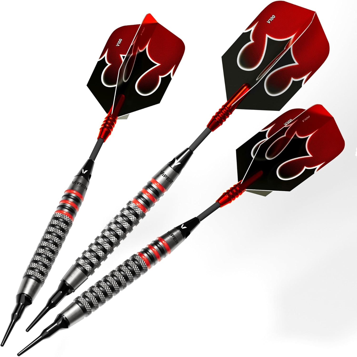 The Viper Shot King Tungsten Soft Tip Dart Set in Silver delivers pro-level performance with a sleek and polished design. Each dart weighs 20 grams and is built with 80% tungsten barrels, which offer exceptional strength and a slimmer profile for tighter groupings. The high-density material reduces bounce-outs and resists wear over time, making this set a strong choice for players who demand accuracy and longevity in their equipment. Whether you're playing competitively or casually, these darts offer the precision needed to keep your scores consistent. Each dart is outfitted with carbon fiber shafts, known for their lightweight structure and durability. The shafts help stabilize the dart during flight, reducing drag and improving consistency from throw to throw. These soft-tip darts are fully compatible with electronic dartboards, making them ideal for adult players who enjoy digital scoring and soft-tip tournaments. The visual design features silver flights that contrast cleanly against the black and carbon components, giving the set a confident, professional appearance that looks sharp in any game room or league environment. This complete soft-tip dart set comes packaged with everything a player needs to stay game-ready. It includes an extra set of shafts and flights, three additional soft tips, six flight protectors to preserve shape and performance, and a dart wrench for easy maintenance. All components are stored in the durable Nomad dart case, which keeps everything organized and protected whether you’re storing your gear at home or traveling to a tournament. The Viper Shot King Silver 20-gram dart set is built for adults who want dependable equipment and a refined look. From its precision-focused construction to its long-lasting accessory kit, this set is designed to support serious gameplay over time. Viper’s lifetime barrel guarantee adds an extra layer of confidence, ensuring players can rely on their darts season after season.