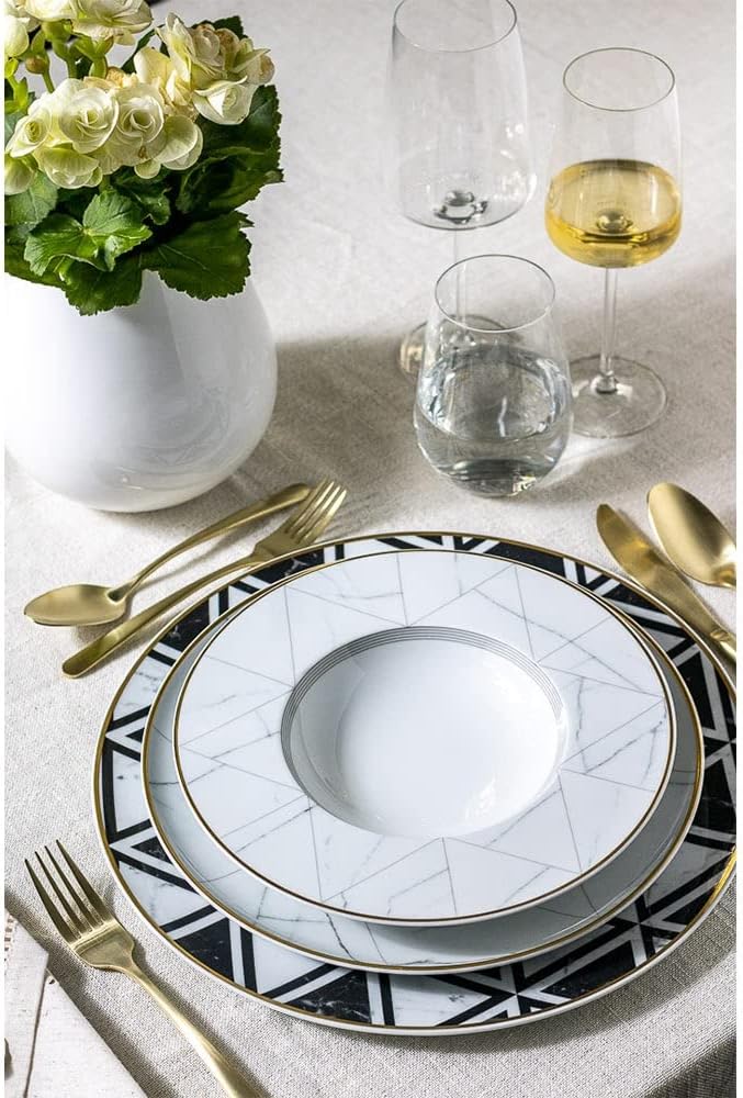 The combination between porcelain and drawings inspired by the noble marble of Carrara, a very refined, geometric approach, creates the illusion that each piece of the set is interchangeable. An unexpected collection created by French designer Coline le Corre.
