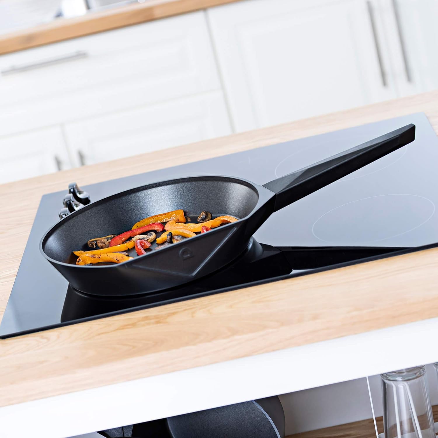 Quality, style and performance. A first of their kind: The Qtecut Series.A performance enhancing, 2-layer non-stick coated frying pan with a difference. One side of the 28cm frying pan has a flat edge to allow it to stand up vertical in your pan storage area, preventing the non-stick from being scratched or damaged. This newly developed solution for storage guarantees a longer life span and performance.Developed in Italy by specialist designers and made from moulded, high purity die cast aluminium, the durability and high heat efficiency of using a mould strengthens the overall structure of the pan as well as allowing even heat distribution.The base of the pan has been specially developed to go on Gas, Electric, Ceramic, Halogen and Induction hob types. A first of its kind, the Qtecut 28cm Frying Pan from Vitinni, not only looks good, but performs even better than your average pan.