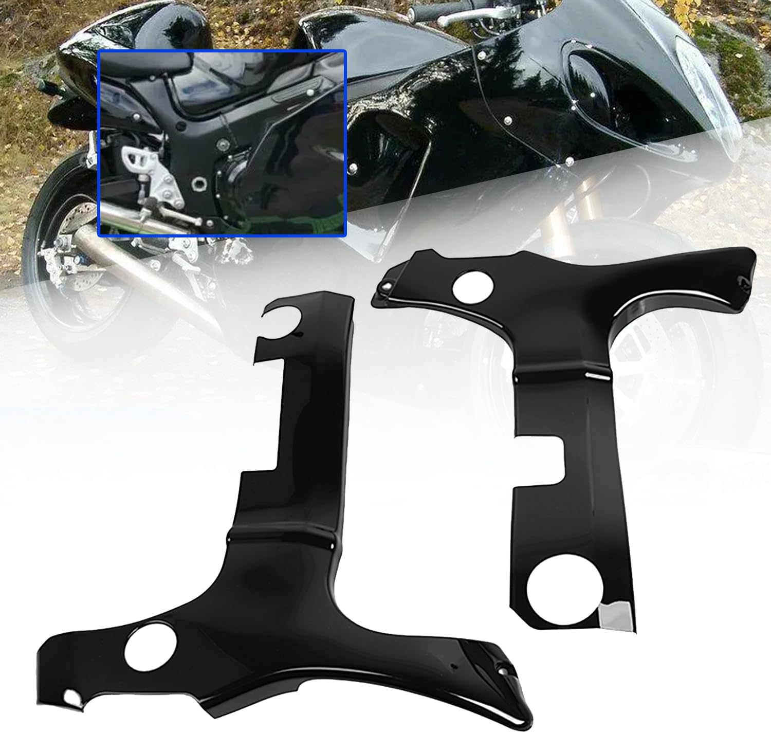 Specification: Condition:Aftermarket 100% New Material:High Quality ABS PlasticColor:Gloss Black/ChromeMade with ABS injection molded plasticGloss Vivid Black or Chrome and durable construction.No fins like othersSold in a pairFits 1st generation direct fitSecond generation may needs 4 spacers* Once it's installed, it blends into the existing frameMounting hardware is not includedInstructions are not availableFitment: For Suzuki GSXR1300 Hayabusa 1997-2025Package Include: 1 pair of Frame Cover