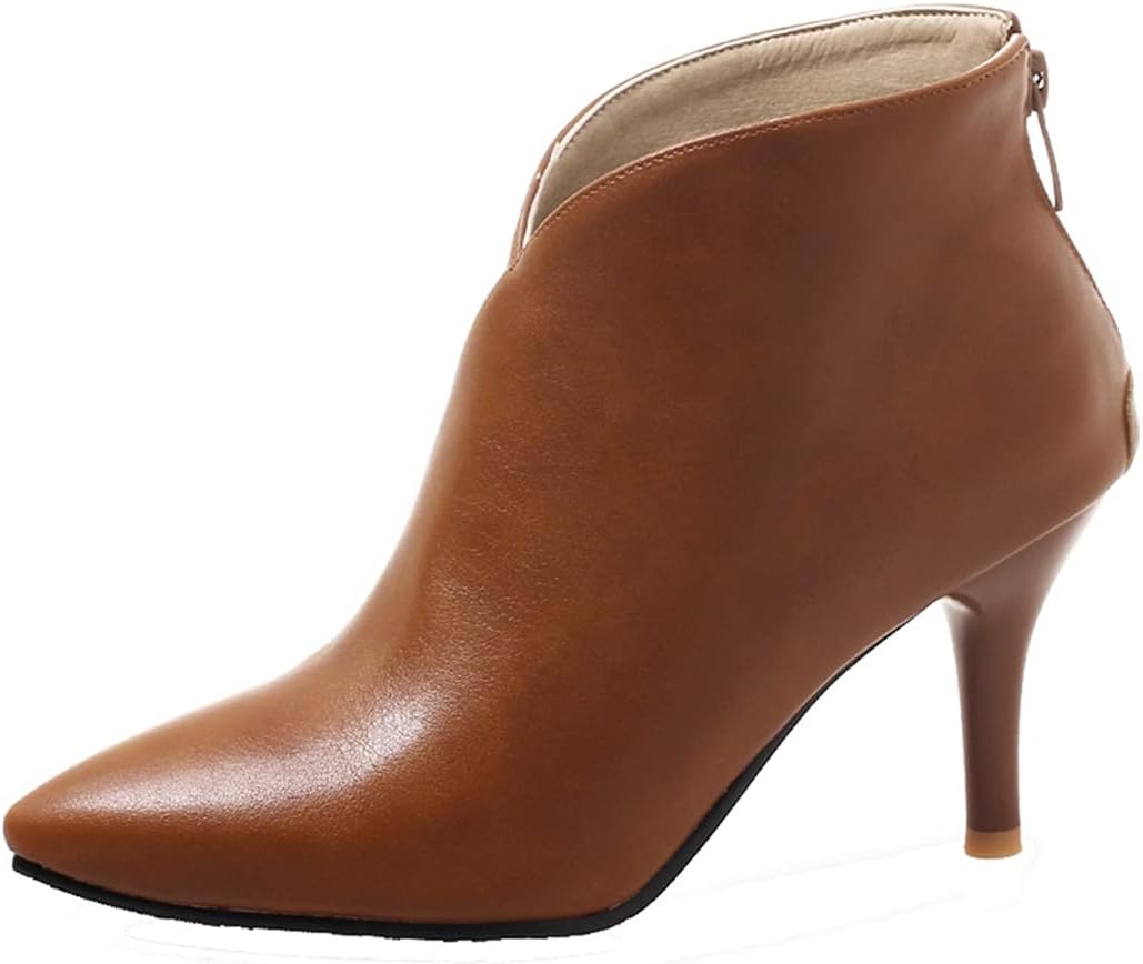 Women's Fashion Pointed Toe Dressy Ankle Boots Back Zipper Stilettos High Heel Elegant Short BootiesSize Chart:Size 4 US = EU34 = Heel to Toe 22.0cm/8.66"Size 4.5 US = EU35 =Heel to Toe 22.5cm/8.86"Size 5 US = EU36 = Heel to Toe 23cm/9.06"Size 6 US = EU37 = Heel to Toe 23.5cm/9.25"Size 7 US = EU38 = Heel to Toe 24cm/9.45"Size 8 US = EU39 = Heel to Toe 24.5cm/9.65"Size 8.5 US = EU40 = Heel to Toe 25cm/9.84"Size 9 US = EU41 = Heel to Toe 25.5cm/10.04"Size 10 US = EU42 = Heel to Toe 26cm/10.24"Size 11 US = EU43 = Heel to Toe 26.5cm/10.43"Use your length and width measurements to find your shoe size on the above size chart. If your foot is fat or wide, please select a bigger size up. Thank you!PERFECT ITEM FEATURES:☛Item Type: Ankle-boots☛Main Material: High Quality Leather upper; Comfort Velvet Lining; Non-skid Rubber sole.☛toe_style: Pointed-toe☛Closure_type: Back Zipper☛Heel Height: Heel Height 2.75 inch☛Width: Medium (BM)☛Season: Spring/Autumn/Winter☛Color: Multiple colors optional☛Occasion Lifestyle: Fashion,Classic,Casual.