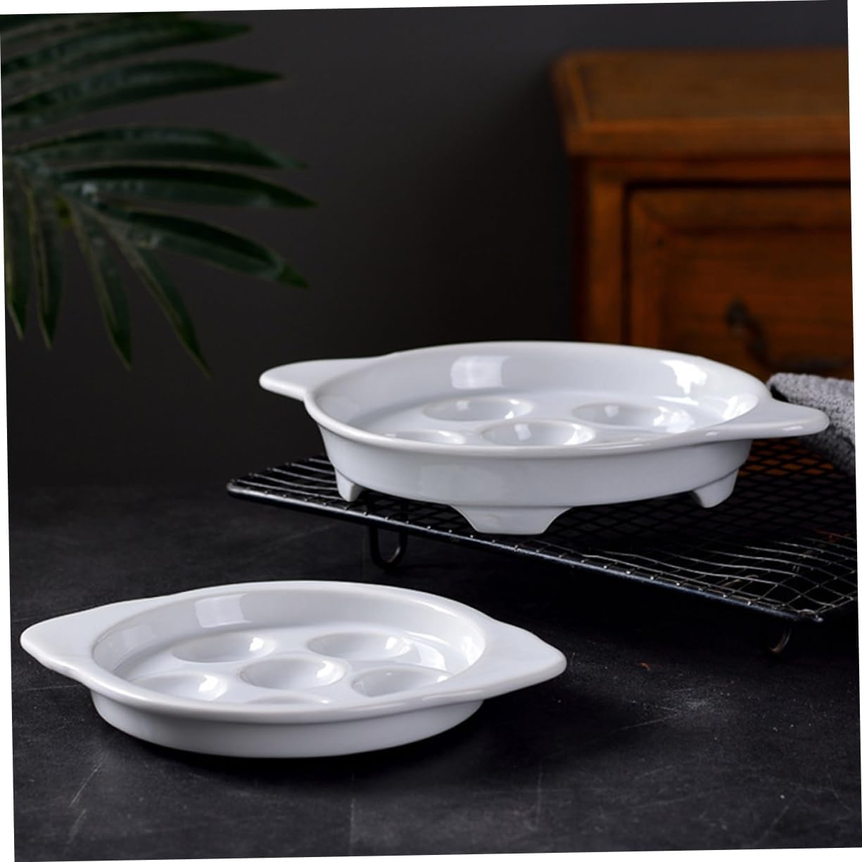 Package Include 2 x Dishes Characteristics -Color: White Server Dish -Size: About 23.00X20.50X3.00cm/9.04X8.06X1.18in Escargot Baking Dish -Material: Ceramic Barbecue Dish. - Mini size and lightweight for saving space. for both home and restaurant use Barbecue Dish Tray - One-piece , easy to clean; ceramic material does not rust easily. It is safe to put into the fridge, dishwasher and oven Ceramic Baking Dish. - It helps to bring your culinary treats and masterpieces from the kitchen to your guests Conch - Specially designed grooves for shellfish products to food from rolling and Kitchen Supply. - Carefully selected material, smooth appearance without rough edges. The product has fine workmanship Baking Goods Information Barbecue Dish This grill plate is for serving escargot.Kitchen Supplies Each compartment can keep in their shells and sauce from oven to table.Kitchen Supply Great for use at home or in a restaurant, to serve well cooked seafood dish for your guests or costumers