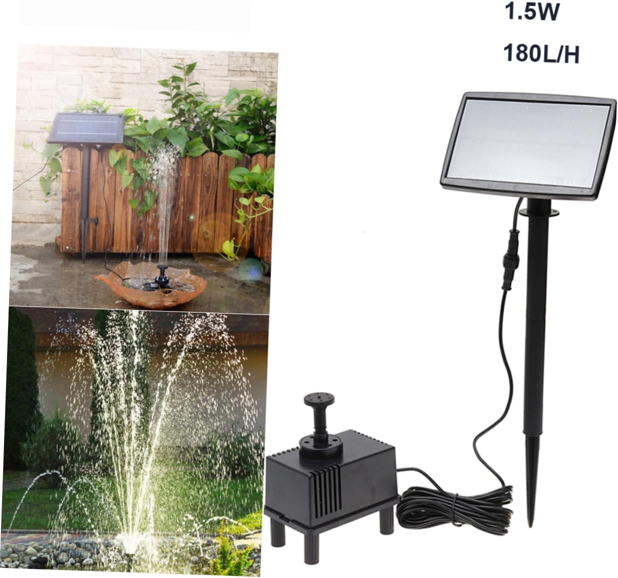 Package Include 1 x Solar Power Fountain Pool Water Pump Panel Submersible Watering for Garden Pool Pond Patio Decoration - 5M Features - Outlet: 8mm water fountain solar pump. - Rated : 210mA solar powered water fountain. - Flow rate: 180L/H solar fountain. - Material: PET outdoor water fountain. - Size: 15.3 X 3cm solar panel fountain. - Life span: ≧10,000h water fountain solar powered. - Heat resistance: 0~45℃ solar powered pool fountain. - Rated voltage: 7V solar pond fountain. - Color: As shown birdbath fountain solar power. - Power consumption: 1.5W solar fountain pump. - Solar panel voltage: 7V solar power fountain pump. Specifications water feature pump - , high efficiency, and stable performance pond fountain solar. - Make use of solar energy, no extra power needed, energy-saving and outdoor solar fountain. - The water pump will work only when there is sunlight to provide solar power, and it will stop working when there is no sunlight solar pumps for fountains. - Add fun and joy to your yard or garden small solar water pump. - Solar power submersible water pump kit, suitable for use in your aquarium, fountain pool, garden pond, etc solar panel pump water feature.Goods Descriptionwater fountain for pond Add fun and joy to your yard or garden with this amazing solar pump, which is good for small or medium fountains, birdbaths and .pond fountain solar The item is an eco- and practical solar power submersible water pump, which is powered by solar energy, no extra battery or electricity needed