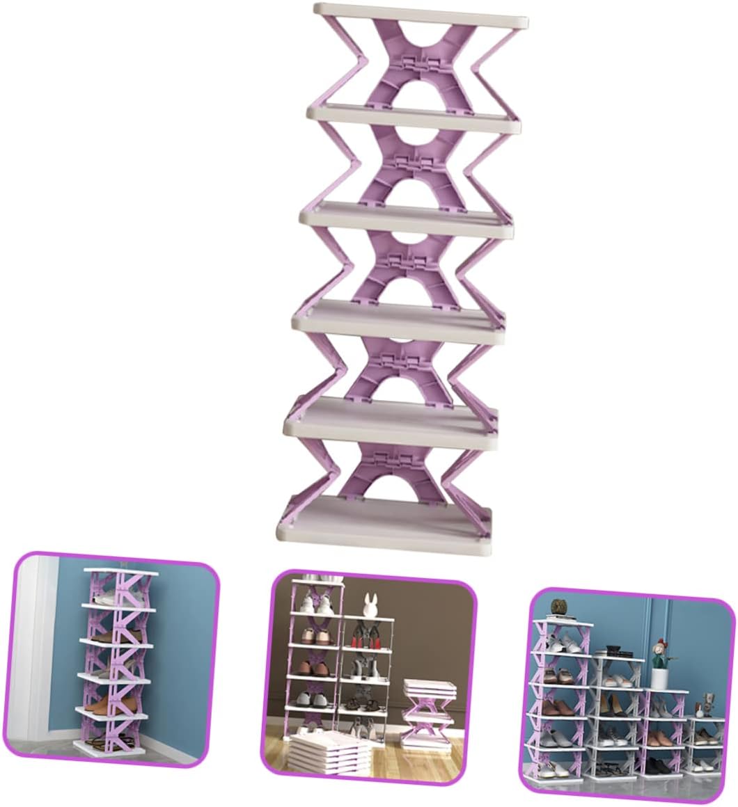 Package List 1 x shoe rack Features -Material:Plastic waterproof shoe shelf -Size:79.00X27.00X27.00cm/31.05X10.61X10.61in tiered shoe storage -Product Info:Folding shoe rack -Color:Purple portable shoes rack -The multi-tier shelf is free of installation and can be used right after opening to save space. shoe stacker -Made of quality material, the shoes rack can keep the living room nice and clean. Organize your shoes. This shoe rack is designed to organize your shoes layer shoe rack. -It has multi-layer space that can store many of your shoes at the same time, which can satisfy your daily storage needs adjustable shoe rack. -It comes with the compact size, which will not take up too much space. It has an excellent craftsmanship, which is delicate and fashionable sneaker organizer. -This shoe rack also allows you to find the shoes you want quickly. You can use it be stable without wobbling houehold shoe organization.Goods Informationfreestanding shoe rack A concise, compact and nice-looking shoe rack must be for you to collect your messy shoes and keep your house tidy! It is meticulously shaped into multi-tier with folding design, providing sufficient and balanced room for shoes