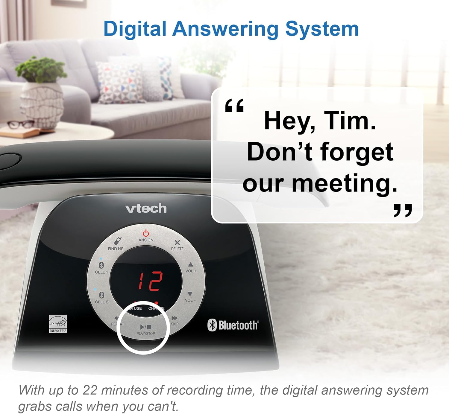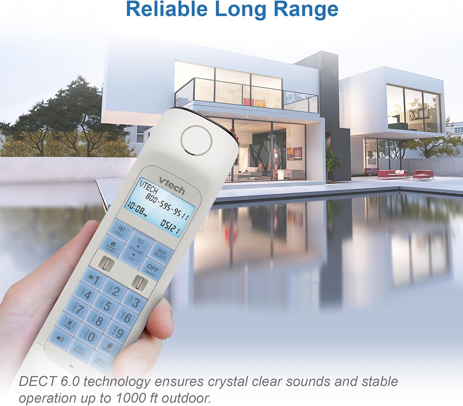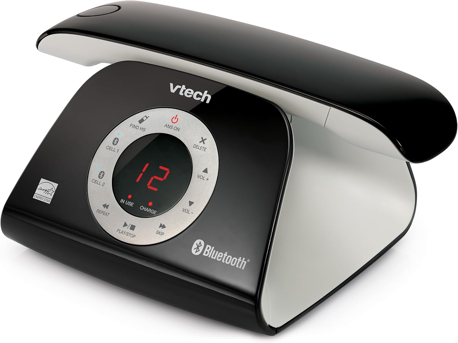 VTech VS122 DECT 6.0 Retro Design Cordless Phone with Modern Digital Technology and Answering System featuring Bluetooth Connect to Cell and Smart Call Blocker. Connect your cell phones and headset with Bluetooth to experience the seamless landline and cellular call capabilities. Screen/ block both unknown and robocalls on your landline with Smart call blocker. You can store up to 1,000 names and numbers to the block list. Save up to 1,000 contacts to the phonebook. Quick access to Phonebook, Caller ID and Call Waiting, ensuring you stay in touch with loved ones.