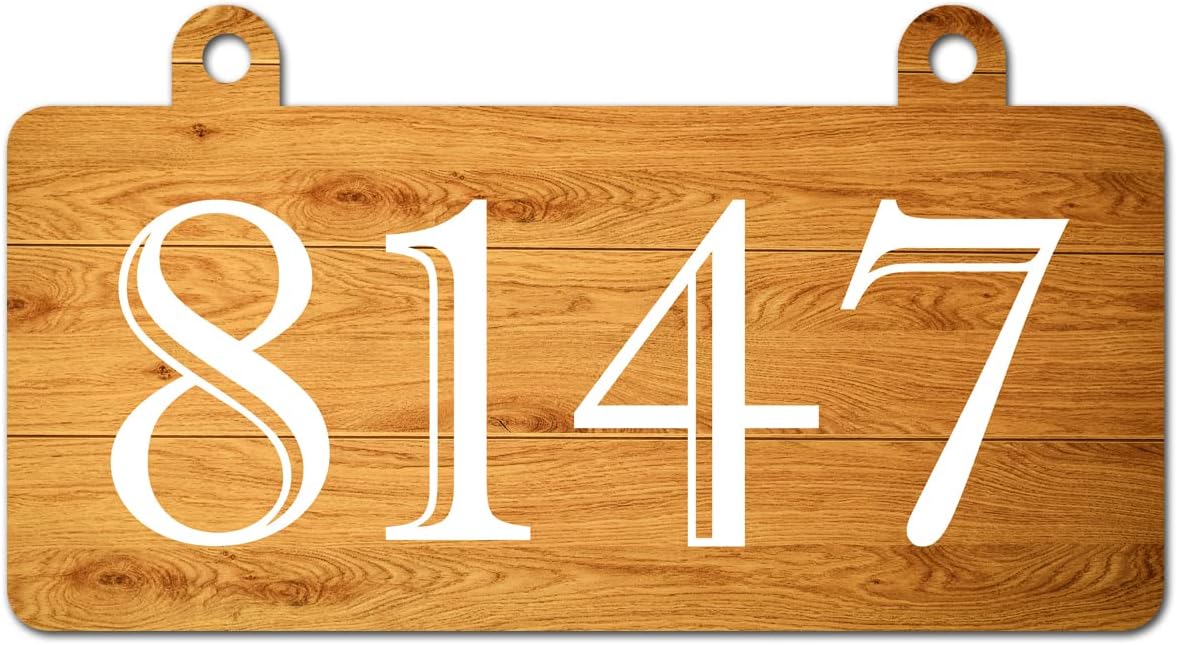 Custom address numbers reflective aluminum composite sign. Durable aluminum composite with a 3mm thickness and pre drilled holes. Includes (x2) 1 1/4" vinyl coated screw in hooks. Made with reflective properties to easily be seen at night. Durable, long lasting, weather proof, UV-proof, and scratch resistant. Designed to be aesthetically pleasing, enhance curb appeal and provide long lasting enjoyment.