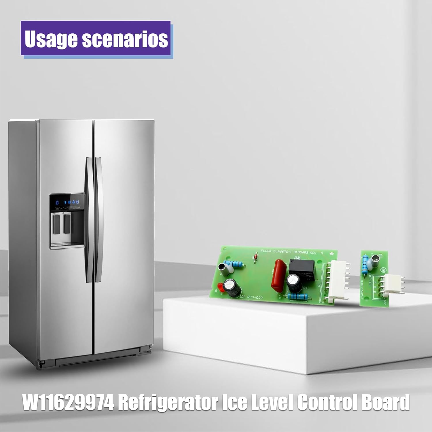 This refrigerator ice level control board is designed to accurately monitor ice levels inside the ice maker, helping prevent overfilling, no-ice issues, or inconsistent ice production. It is an ideal replacement solution when the original board fails due to moisture, aging, or temperature fluctuations. ✔ Precise Ice Level Control Upgraded infrared sensing accurately detects ice bucket levels, ensuring consistent ice production without overfilling or interruptions. ✔ Built for Cold & Humid Environments Durable electronic components and moisture-resistant circuit design support reliable operation in low-temperature, high-humidity freezer conditions. ✔ Stable Performance, Fewer Repairs Designed to restore proper ice maker function and reduce recurring ice production issues caused by aging or damaged control boards. Compatible with select refrigerator models Replacement for Whirlpool, Replacement for KitchenAid, Replacement for Maytag, Replacement for Jenn-Air, Replacement for Viking, and Replacement for Kenmore refrigerators equipped with ice maker systems. Power off and unplug the refrigerator Remove the original ice level control board Connect the original wiring connectors to the new board Secure the board in place and restore power