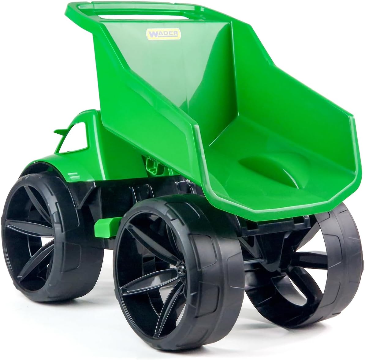 With the Maximus tipper in green, even the smallest children from 12 months can emulate their big idols. The tipper is approx. 59 x 35.5 x 31 cm and equipped with a movable trough and extra wide tyres. With the construction vehicle toys, sand or pebbles can be transported from A to B. In combination with other toys and vehicles from Wader boys and girls can recreate many imaginative situations. This promotes motor skills, coordination and social behaviour and stimulates the child's imagination. The toy is made of robust plastic, is free from any harmful substances, high-quality workmanship and therefore particularly durable.
