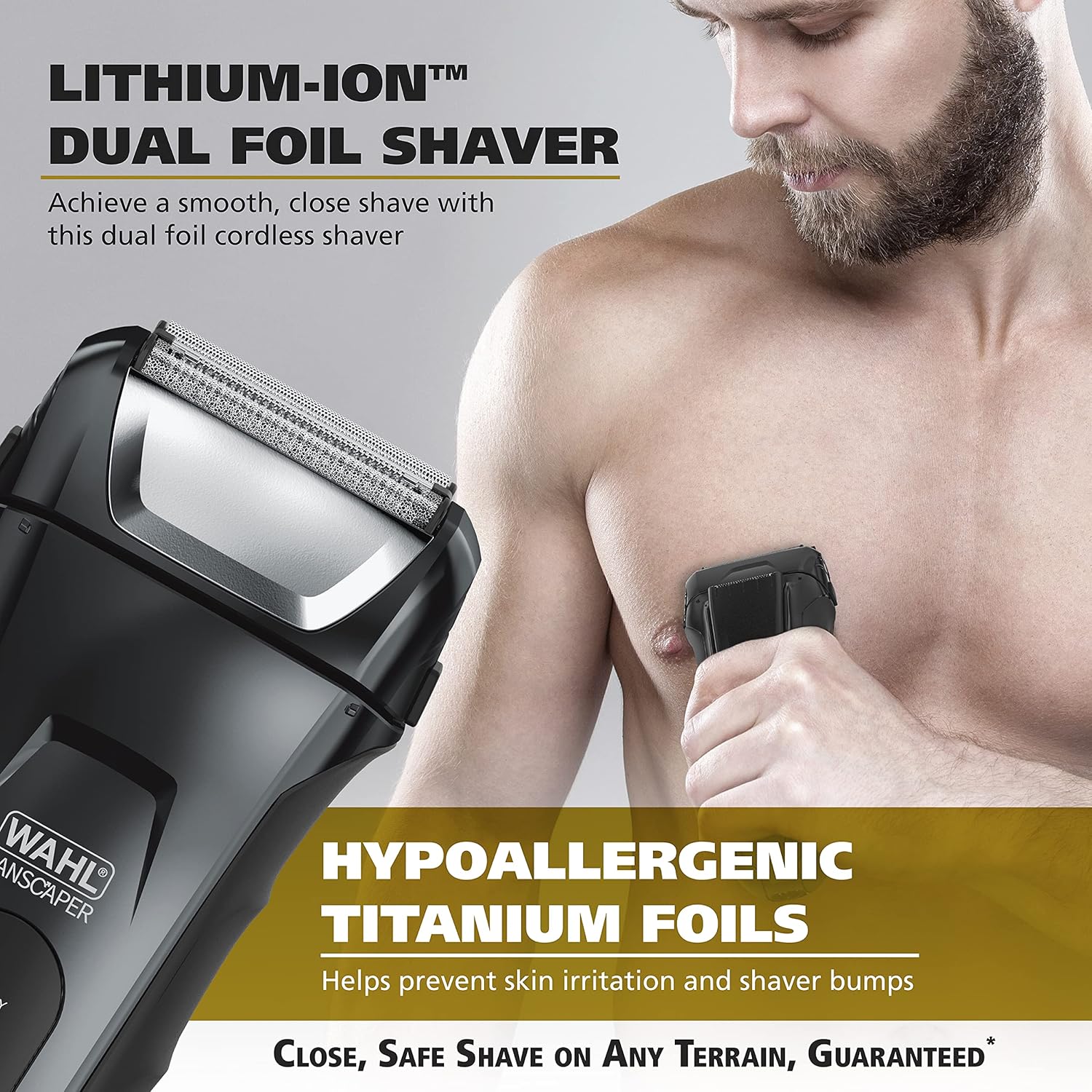 Our titanium foils are hypoallergenic which helps to prevent skin irritation and shaver bumps by as achieving a smooth, close shave. Manscaper Shaver features a 90-minute run time from a 1 hour charge as well as quick charging with 5 minutes of run time from 5 minutes of charging; The battery and can go up to one year between charges with no ‘memory’ issues. This travel-friendly rechargeable wet/dry electric shaver is showerproof and features flexible foil cutters & a pivoting head for a comfortable shave, a non-slip grip & travel lock, & Battery Fuel Gauge. Flexible foils move with you, providing a more comfortable shave, our advanced foil pattern provides smooth shaves & features a long hair cutter bar as well as a full-size pop-up precision trimmer detailer. Wahl clippers, trimmers, & shavers are available in a variety of styles to meet your home hair cutting needs. From Lithium Ion cordless & rechargeable clippers to heavy-duty corded models. Wahl clippers and trimmers have been used by professionals in the salon & barber industry since 1919; Featuring self-sharpening precision blades & quality construction.