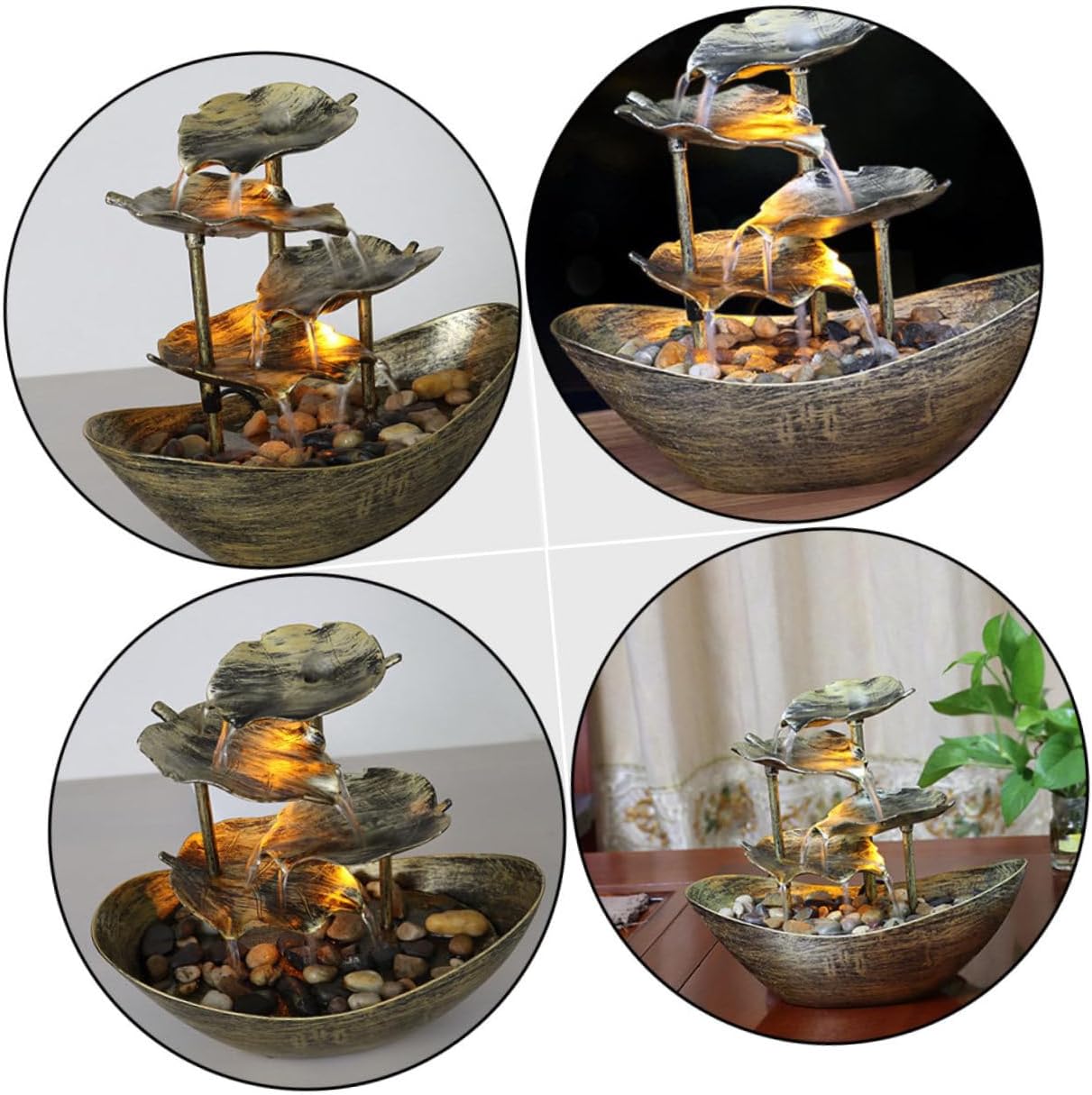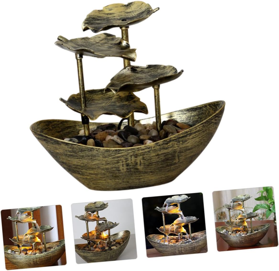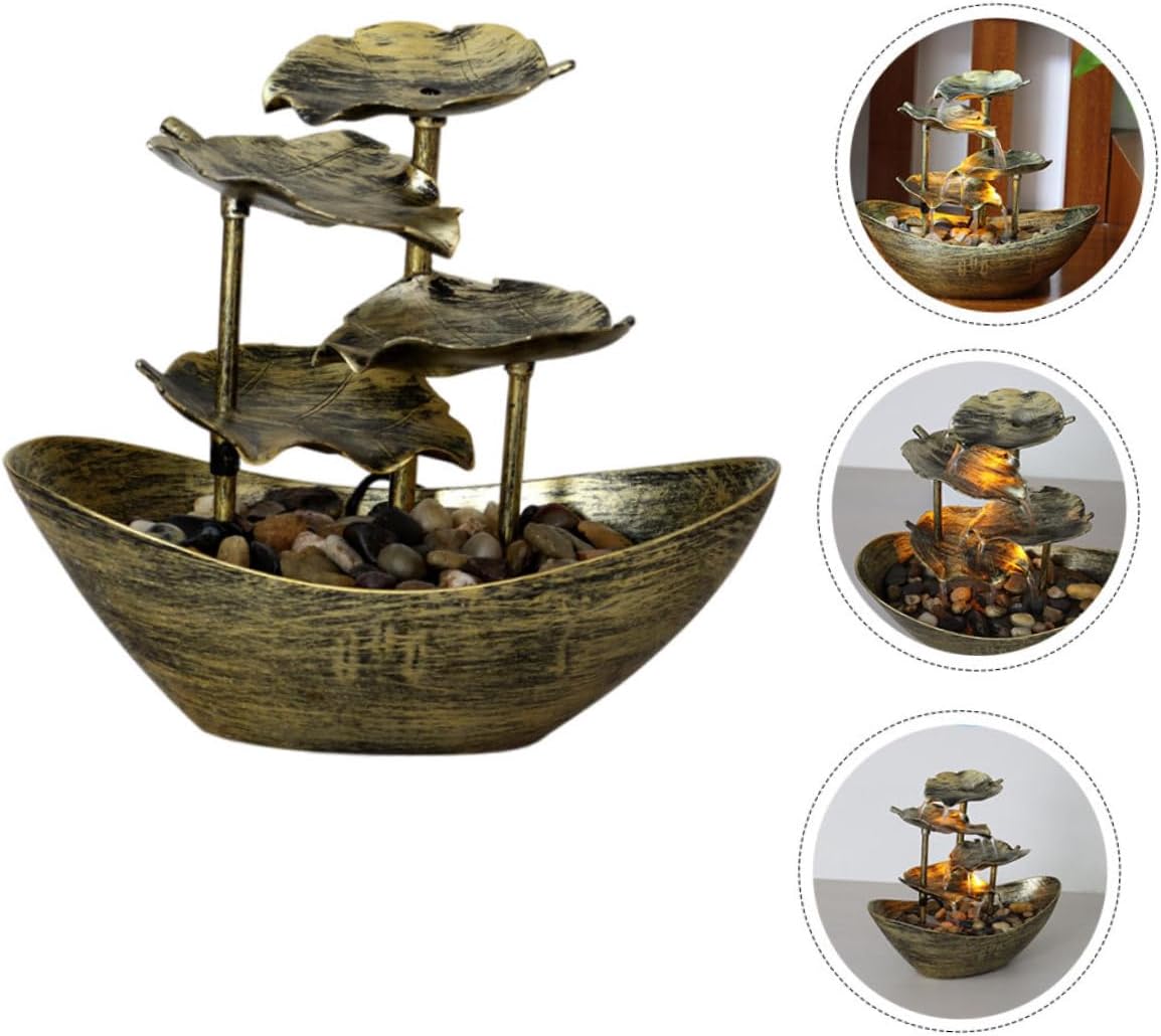Package List 1 x tabletop adornment with USB plug Characteristics -Material:Plastic Desktop Ornament -Product Info:Lotus leaf ingot fountain -Note: The motor need to be submerged by water Desktop Decor -Size:28.00X25.00X15.00cm/11.00X9.82X5.89in Water Running Ornament -Product power supply: DC 5 (not included) Landscape Ornament -motor power: 120 L/h Home Decoration -Color:Golden Household Furnishing -It is a nice housewarming, birthday or New Year gift for your friends and family members Waterfall Decoration. -Small decorative fountain for tabletop decoration Running Water Adornment. - flowing water design brings visual beauty, soothes emotions and reduces stress Fountain Adornment. -Suitable for bedroom, living room, restaurant banquet, etc Running Water Layout. -It is made of materials for durability Tabletop Fountain.Goods InformationRunning Water Adornment Features creative appearance, very and creative.Desktop Ornament It is made of , which can be used for the long time.Household Furnishing If you are looking for an indoor adornment, this product will be the for you.Landscape Ornament Fine workmanship ensures its details