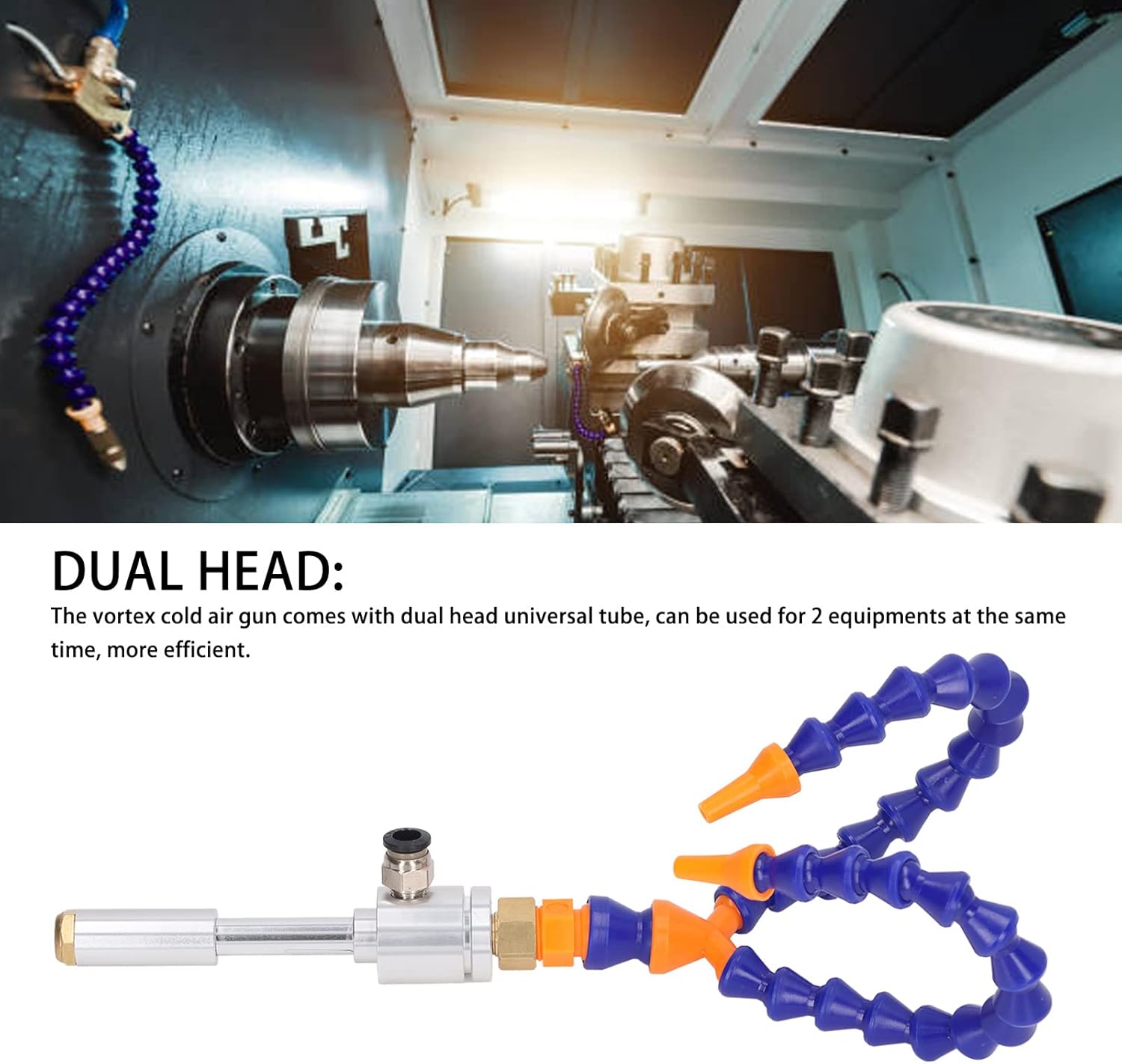 Specification: Item Type: Cold Air Cooling Material: Aluminum Alloy Air Pressure: 7 bar : 8cfm, 220L/min Refrigeration Capacity: 520BTU/h, 131Kcal/H Tube Diameter: Approx. 28mm/1.1in Tube Length: Approx. 120mm/4.7in Inlet Hole: Female Thread G1/8 Cold Air End: Female Thread G1/4 Outline: 08 Miniature How to Use: Match the appropriate model and size before installation and use. packing list: 1 x Tube 1 x Connector 1 x Dual Head Universal Tube