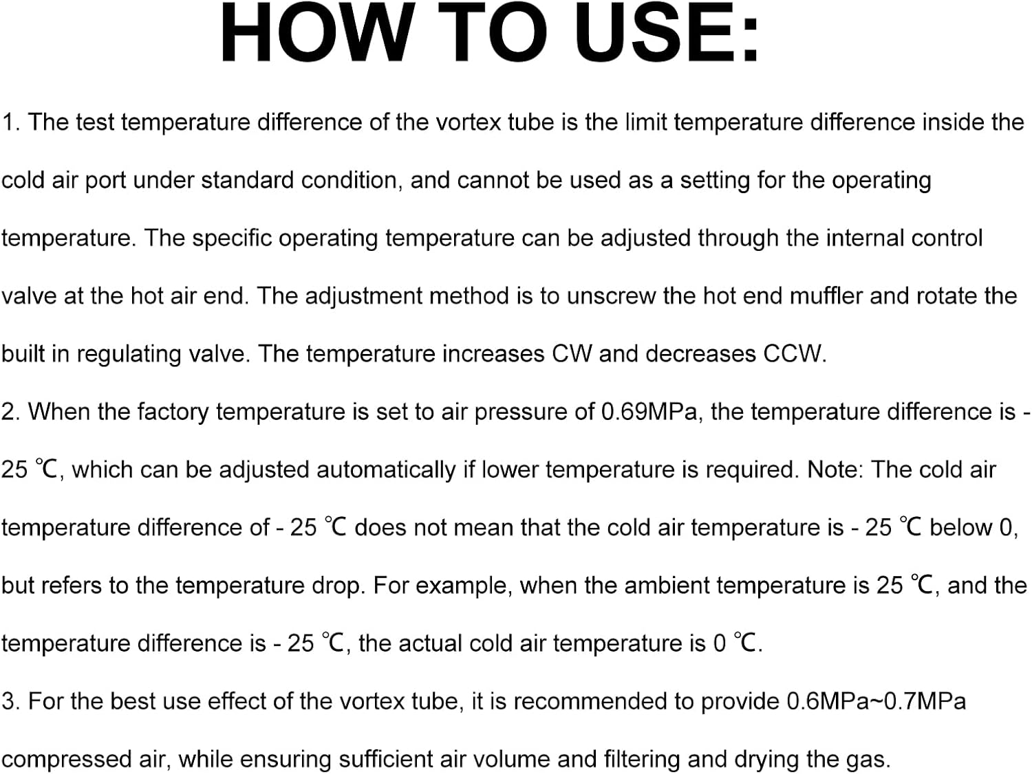 [Rapid Cooling]Efficiently cools heated surfaces using technology for speedy results in metal welding and soldering. [User-Friendly Design]Compact and lightweight construction allows for easy installation and hassle-free operation. [Safe Operation]No electricity needed, reducing the of sparks or spills during cooling tasks. [Versatile Applications]Perfect for industries such as plastic and wood processing, sewing, and heat sealing. [Premium Materials]Constructed from durable aluminum alloy, ensuring strong resistance to heat and impact. Item Type: Air Cooling Model: TV23010-1 Air Pressure: 6.9 Bar Air Intake: 280L/min, that is, 10cfm. Maximum Cooling Capacity: 650BTU, that is, 164Kcal/Hr. Type: Standard Air Inlet: G1/4 female thread. Cold Air End: G3/8 female thread.? 1 x Tube 1 x Connector 1 x Gooseneck Hose 1 x Valve 1 x Magnetic Base