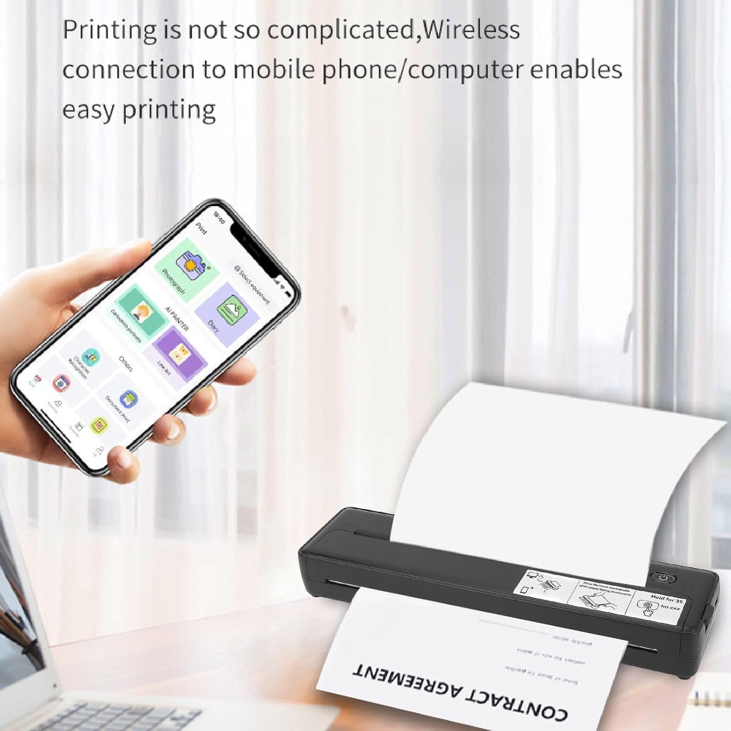 [Portable Design] Half the width of an a4 sheet, this compact printer easily fits in a backpack or briefcase, making it for on-the-go printing, with a standby time of up to 30 days for uninterrupted use when needed. [Convenient Wireless Printing] Compatible with ios and devices via connection, this printer allows for easy printing from anywhere without complex setups, ideal for mobile professionals and students. [Versatile Paper Support] This inkless printer supports thermal paper widths of 210mm and 218mm, equivalent to standard a4 sizes, catering to various printing needs from small notes to long banners. [Long-lasting Battery] With a robust 1800mah rechargeable battery, this printer offers up to 1.5 hours of consistent performance on a full charge, printing up to 90 sheets of a4 thermal paper and featuring automatic shutdown for energy efficiency. [Efficient Printing] The portable printer eliminates the need for ink, toner, or ribbons, offering crisp, professional quality prints with a clear resolution of 203dpi. Spec: Item Type: Smart Thermal Printer Model: X8 Material: ABS Printing Parameters: 203DPI Printing Method: Thermal Inkless Printing Battery Capacity: 1800mah 7.4V Li Battery x 1 2A Charging Printing Paper: A4 Size: Approx. 210mm / 8.27in, 218mm / 8.58in Connection: , USB USB Computer Printing Inkless Monochrome Printing Charging Port: Type C APP Version Language Support: Simplified Chinese, Traditional Chinese, English, Spanish, Danish, Italian, Japanese, Korean, German, French, Portuguese, Russian, Thai, Dutch, Polish, Swedish, Written Norwegian, Croatian, Czech, Finnish, etc. Package List: 1 x Printer 1 x Manual 1 x Data Cable 10 x Printing Papers How To Use: Follow the instructions in the manual.