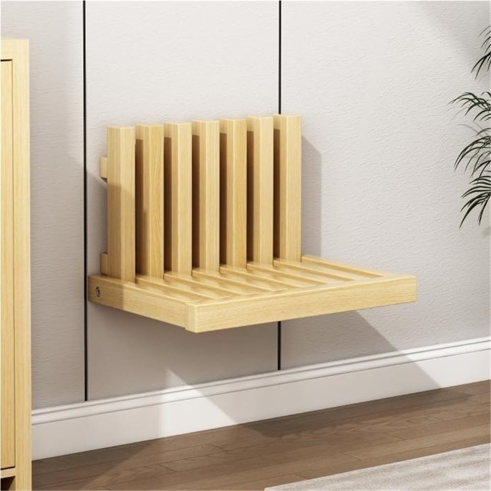This wall-mounted folding chair is easy to operate. When using it, you only need to gently pull it open. After use, it can be easily folded back to the wall to save space. The small size and easy installation method make it very suitable for bedrooms, entrances, balconies, and bathrooms. Made of rubber wood, it has high surface hardness, strong heat resistance, and is not easy to deform, ensuring durability for long-term use. The 90° folding design can save space to the greatest extent, especially suitable for areas with limited space. This folding seat is not only suitable for home, but also a spare seat for meeting rooms, living rooms, and bathrooms. It is very suitable for use as a place for guests to take off their shoes or create a rest corner, easily providing additional seats. Suitable for different people to use and meet various needs.Note:Packing list: 1x folding stoolDue to the lighting effect and shooting angle, the product may have a slight color difference, please understand.Thank you for your choice!