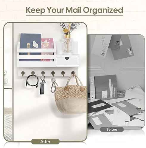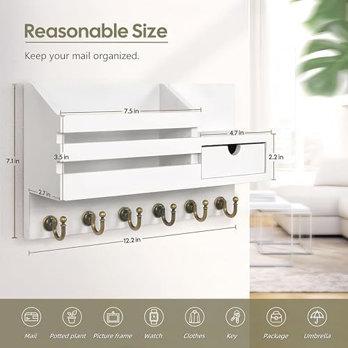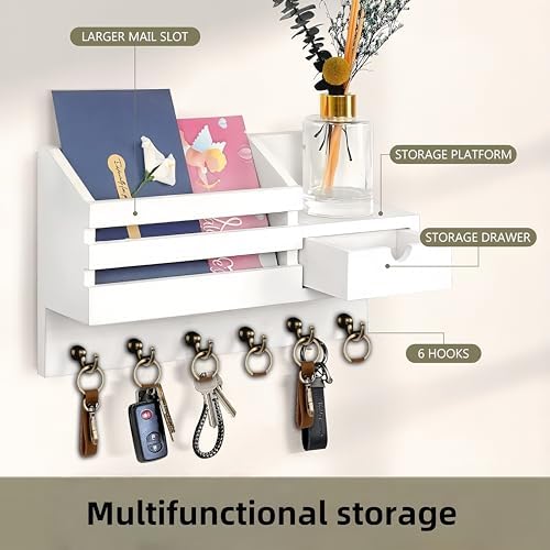 Tame the Chaos: Your All-in-One Wall-Mounted Organizer Solution Are you tired of the morning scramble for keys or frustrated by cluttered entryways? Meet your ultimate organizational hero – our Multifunctional Wall-Mounted Storage System! 1. All-in-One Organization: Conquer Clutter, Simplify Life - **Generous Mail & Document Hub**: The spacious mail slot accommodates letters, bills, magazines, and even bulky documents, keeping them organized and accessible. - **Clever Storage Drawer**: Store small essentials like spare keys, USB drives, or jewelry out of sight yet within reach, ensuring you can quickly find what you need. - **6 Sturdy Hooks**: Hang keys, leashes, lanyards, or headphones effortlessly. No more panic over misplaced items – they’ll be right where you left them. - **Versatile Shelf Space**: Showcase a small plant, a favorite trinket, or your go-to hand sanitizer, turning storage into decor. Perfect for entryways, home offices, or kitchens – wherever clutter breeds, this organizer crushes chaos. 2. Entryway Wall Organizer: Effortless Installation - **Simplified Installation**: No drilling dread here. Our innovative guide board ensures you drill in the exact right spots, eliminating crooked messes or extra holes. - **Complete Hardware Kit**: Comes with drywall anchors, screws, and sponge gaskets included. Just grab a drill or screwdriver and get started. - **Damage-Free Design**: Our anchors protect your walls from unnecessary holes, making it ideal for renters or anyone who values their space. Install in minutes and enjoy for years to come. 3. Key Holder Wall Mount for Every Lifestyle - **Who Needs This? Everyone!** - **Busy Parents**: Keep school notes, car keys, and backpacks in one spot, reducing morning chaos. - **Remote Workers**: Organize desk clutter by storing notebooks, charging cables, and headphones neatly. - **Minimalists**: Keep essentials visible yet organized for a clean, tidy space. - **Hosts & Ente...
