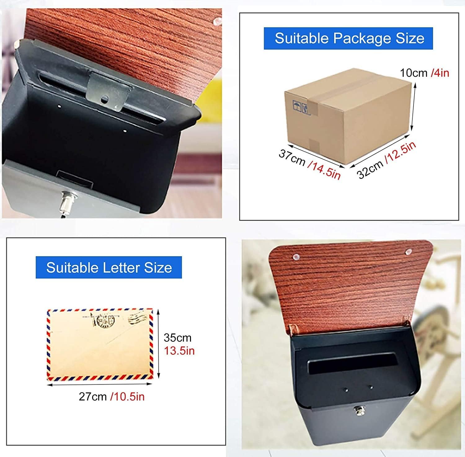 GBVQBA A mailbox is the first part of your house to greet visitors and passersby – it's a metaphorical handshake extending out to the world. Why not give it the consideration it deserves You know what they say about first impressions. Specifications: - Material: Cast aluminum - Mail Box Size: 26×6.5×41cm(10×2.5×16in) - Slot Size: 24.8×3cm(9.7 x 1in) - Weight: 3kg - Color: Brass , Black , White Package Contents: - 1x Mail Box - 2x Keys - 4x Screws - 4x Screw Caps Features: - Durable galvanized with coating surface, , anti-rust and weather-proof - Lock and keys ensure security - Drilled mounting holes on the back plate and bottom - The mail box will provide long-term durability and use for years . - Easy installation; Can be mounted firmly on walls, sheds, gates or garages - Mailbox can also be utilized as a drop box - This is absolutely perfect for home or office use.Both for homes and businesses. Note: - Due to the different display and different light, the picture may not show the actual color of the item - The length is measured by hand, so there will be a 0.5-1cm error.