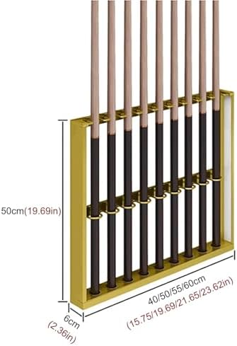 Introducing our stylish billiard cue rack, designed to enhance both functionality and aesthetics in your game area. With its sleek black finish, this cue rack seamlessly complements a variety of decor styles, making it an ideal addition to game rooms, restaurants, bars, clubs, and garages. This wall-mounted club rack is the perfect solution for maximizing your space while keeping your pool cues organized and easily accessible. Its freestanding design offers generous storage capacity, catering to both casual players and enthusiasts alike. Whether you're hosting a gathering or simply enjoying a game night with friends, our cue rack ensures that your cues are always within reach and ready for action. Crafted from durable iron, this pool stick holder measures 40x6x50cm, 50x6x50cm, 55x6x50cm, or 60x6x50cm, providing ample room for your entire cue collection. Maintenance is a breeze—just wipe it down with a cloth or paper towel to keep it looking pristine. Elevate your billiard experience with a practical yet stylish accessory that fits beautifully in any billiard room or entertainment space. Choose our billiard cue rack for a blend of organization and elegance, making it the perfect addition to your home, bar, or club setting. Please note, the package includes one pool cue rack; other items shown are not included.