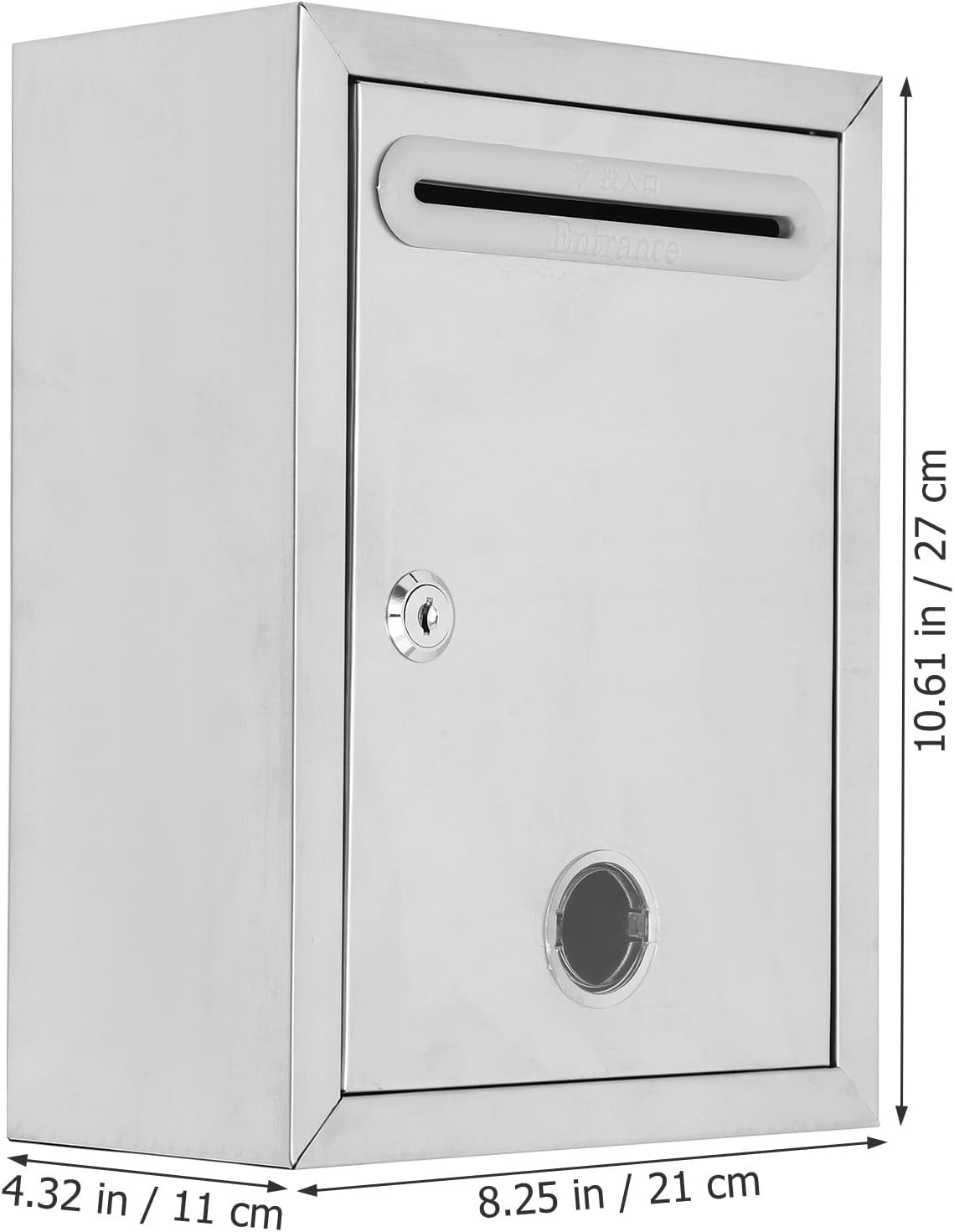 Package List 1 Features -Product Info:Wall-mounted complaint box -Material:Stainless steel -Color:Silver -Size:27.00X21.00X11.00cm/10.61X8.25X4.32in - This suggestion box is simple but practical in performance, you can use this box on many occasions wall mount mailbox with lock. - Suitable capacity for storing envelope, newspaper, letter of complaint, as well as the donation mailbox for house wall mount. - This box help prevent your important mail from being destroyed, stolen or replaced. Wall-mount design, save space locking mail boxes. - Manufactured with , the suggestion box is durable and practical in use. Can be used with confidence. - With lock design and the product is well polished, the mail box does not hurt hands when used lock mailbox.Goods Descriptionlocking wall mounted mailboxes It can be used as a mailbox, complain letter box, suggestion box.locking mailbox The suggestion box is made of stainless steel materials, complex process, and with fine workmanship.suggestion collect bin The box is well-designed, durable and practical, is simple to use, easy to install