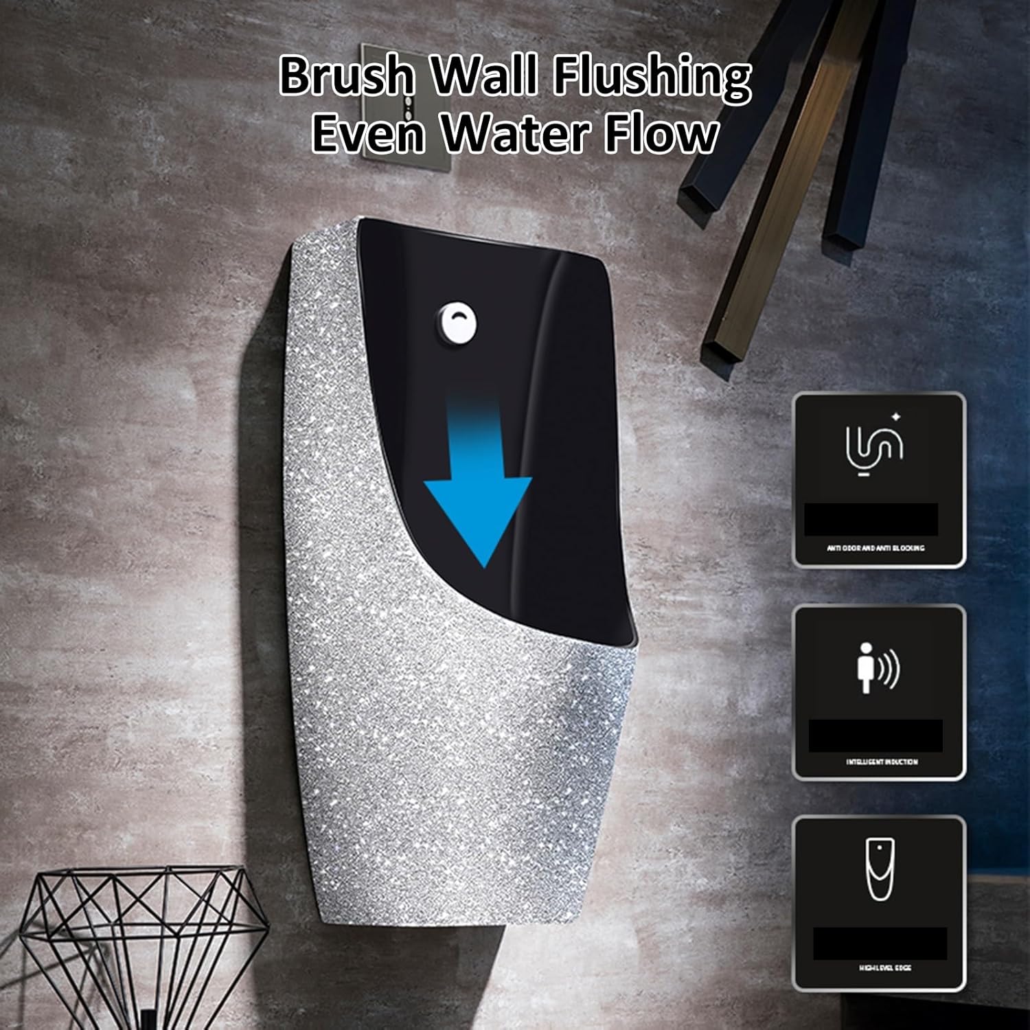 Wall Mounted Ceramic Urinal Commercial Washout Urinal Space-Saving Urinal with Sensor Flush ValveThis Wall mounted urinal is designed with a built-in sensor flush system that offers both pre-flush and post-flush for a hygienic and hands-free experience. The full wall-mounted design leaves no dead corners, while the brush wall flushing ensures an even water flow for thorough cleaning. With a high-edge surround, it prevents splashes and keeps the bathroom neat. Made from high-temperature fired ceramic, this urinals for men, stain-resistant, and easy to maintain. Suitable for home, office, and commercial settings, this sensor flush urinal combines modern style, convenience, and practicality for everyday useSpecifications:Name: Urinals for MenMaterial: Ceramic + SensorDimensions: 38x35x77cm/14.96x13.78x30.31inProduct Color: As shown in the pictureMounting Method: Wall-MountedDrainage Method: Wall-DrainUse: Bathrooms, bars, apartments, restaurants, shopping malls, airports, hospitals, schools, and other public places.Packaging: 1 urinalNotes:1. Please confirm the style and size before purchasing.2. Please leave a clear view of the water inlet and outlet before installation.3. Due to manual measurement, there may be a 1-3 cm discrepancy. Please refer to the actual product for accuracy.