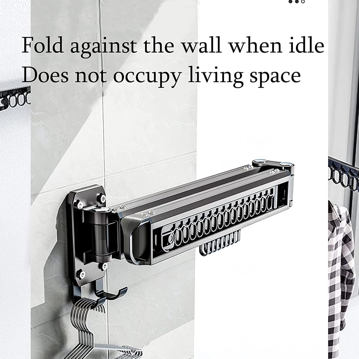 Wall Mounted Clothes Drying Rack, Retractable Drying Rack for Indoor Outdoor, Apply to Balcony, Laundry, Bathroom,Patio and RV Features: It is suitable for various family scenes, such as living room, bedroom, bathroom, kitchen, and even office and nursery. Balcony:This drying rack can be removed at any time so it can be removed when not in use without affecting the appearance of your balcony Bathroom:A perforated drying rack that won't leave traces of use on your bathroom walls Laundry:This drying rack is foldable , compact and space-saving when folded, suitable for use in the drying room Package includes. 1 * Retractable laundry rack