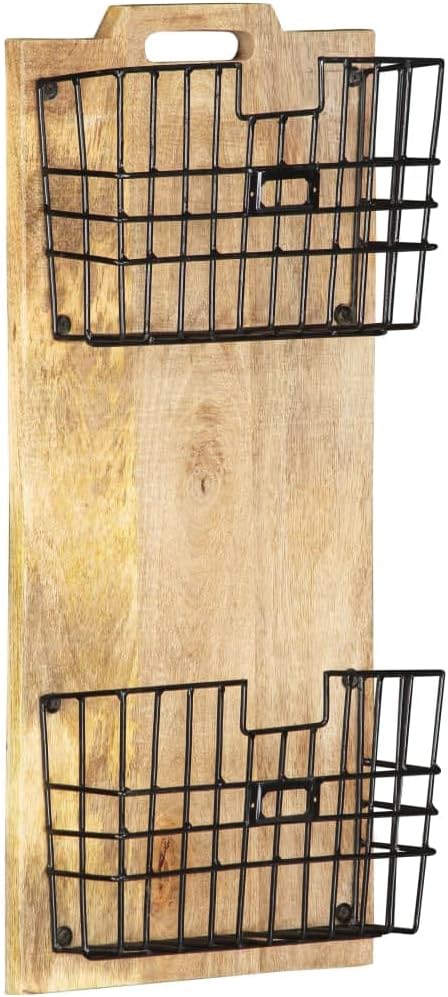 This wall-mounted magazine rack is a fab mix of practicality and rustic charm, making it a perfect fit for any space. solid mango wood, it has a warm, natural vibe that goes well with all kinds of decor, while giving you a neat storage spot for your reading goodies.Stylish Design: The rustic look enriches your home or office space, adding a bit of nature's charm. The wood finish gives off a warm vibe that invites chill and creativity.Sturdy Construction: solid mango wood, this rack looks great and is built strong, ensuring it lasts in any spot. It can handle the daily grind while staying sturdy.Space-Saving: The wall-mounted feature helps you make the most of your vertical space, keeping your area tidy without losing style. Perfect for tight spaces, it keeps essentials organized and easy to find.Ample Storage: Made to fit multiple magazines, this handy storage solution gives a special spot for your reading stuff, helping you keep your area neat and orderly. Great for any book lover wanting to enjoy their reads in style.Easy Assembly: Comes with everything you need for smooth setup, so you’ll have your magazine rack good to go in no time. Color: Brown Shape: RectangularMaterial: Solid Mango woodFinish: Painted Indoor/Outdoor: Indoor OnlyCover Included: NoRoom: Living RoomCapacity: 2 magazinesMounting Included: All included to mountDimensions: 3.9 x 13 x 26.4 in (W x L x H)Weight: 8.6 lbsLadder: NoDelivery Contains: Wall-mounted magazine rack, 2 basketsAssembly Required: No