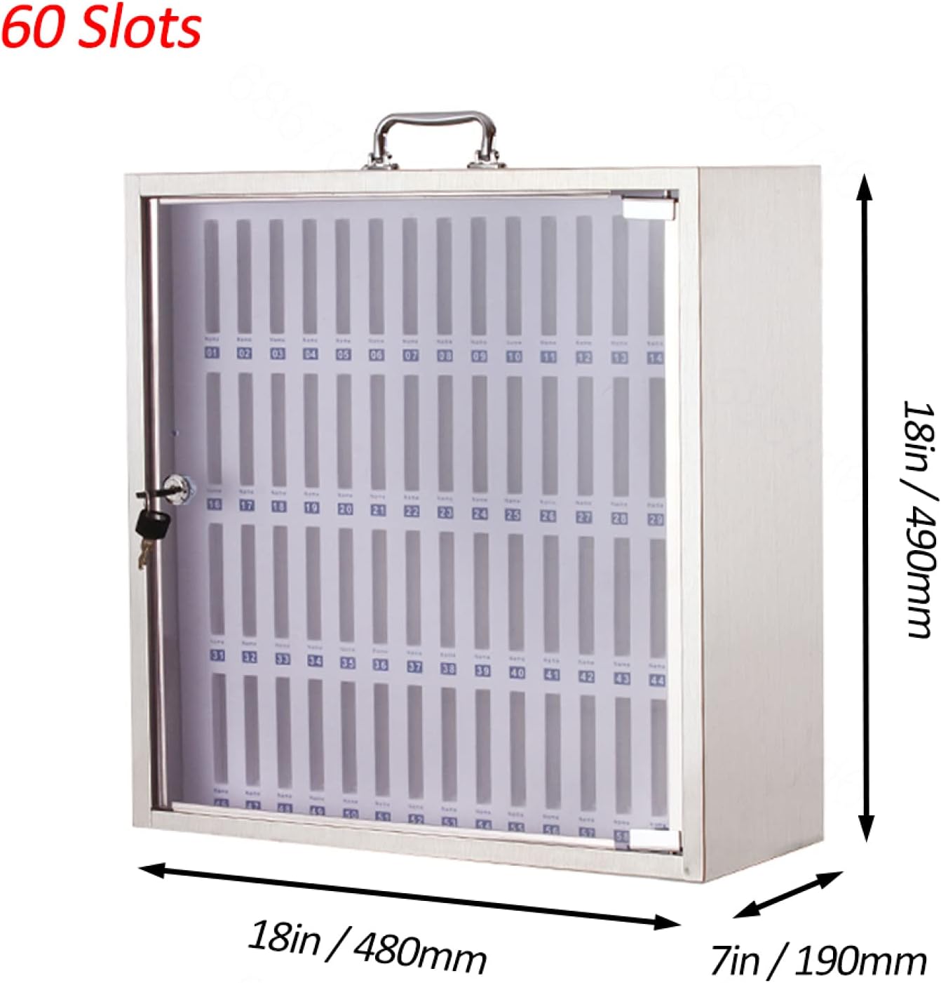 This mobile phone storage box is expertly crafted from high-quality aluminum alloy and transparent acrylic, providing both durability and a modern look. Designed to enhance organization and improve productivity, this holder is ideal for various settings, including schools, offices, gyms, mobile phone shops, conference rooms, laboratories, and workshops. Available in multiple configurations—12, 24, 36, 48, and 60 slots—this versatile storage solution can accommodate your specific needs. The compact dimensions of each model ensure it fits seamlessly into any space, whether you choose to mount it on the wall or place it on a desk. The thoughtfully designed storage box features ABS strips and aluminum edging that resist rust and corrosion, while the stainless steel wrapping angle adds to its aesthetic appeal. Each slot is clearly labeled with numbers and remarks, allowing you to quickly identify and access your devices, boosting efficiency in busy environments. With a stylish and functional design, this mobile phone holder not only helps keep your workspace tidy but also enhances the overall experience for staff, clients, and family members. Keep your mobile devices neatly organized and easily accessible with this must-have storage solution.
