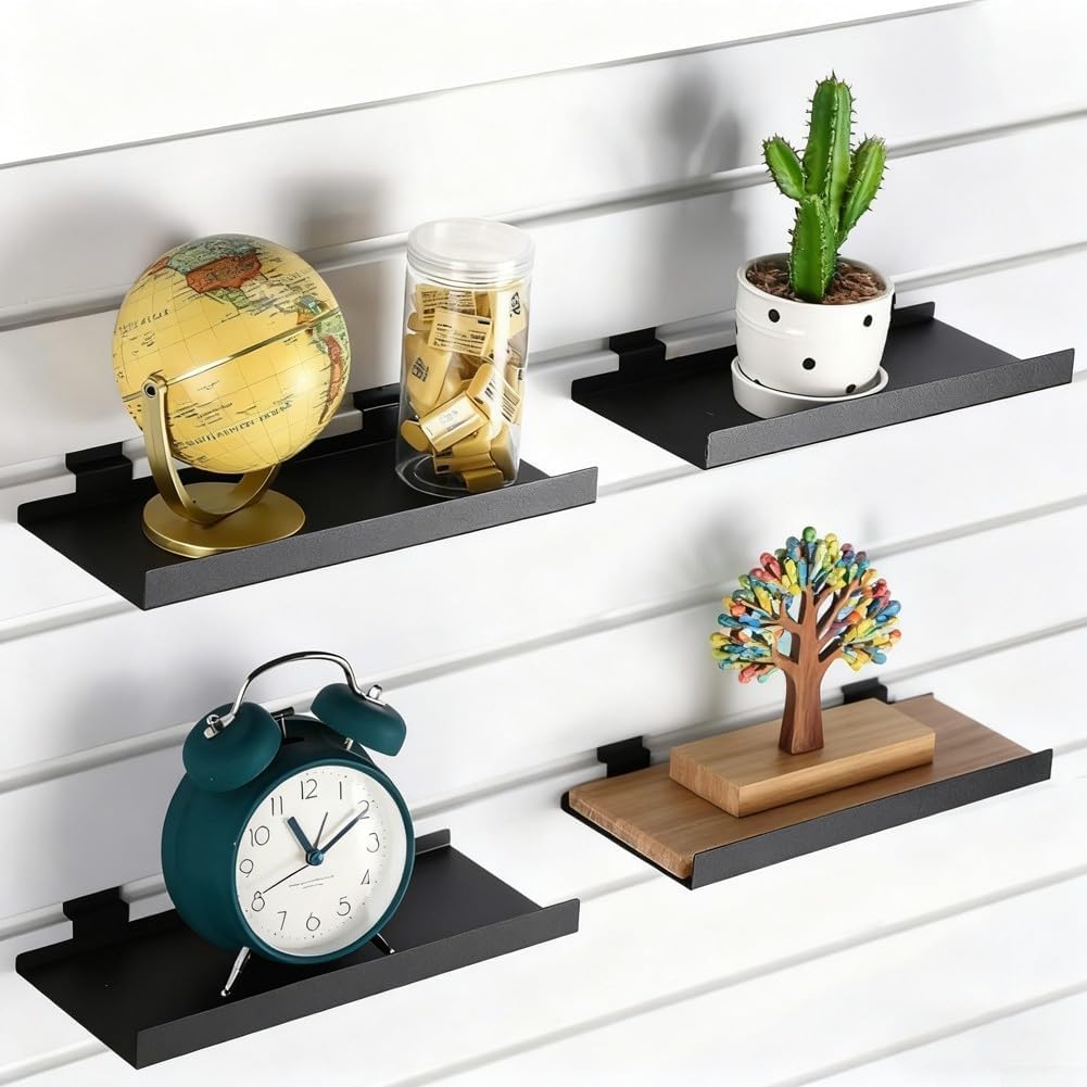 Product description Features:*Functional Design: Specifically designed for wall - mounted storage and display, helping organize various items.*Sturdy Iron Build: Crafted from iron, it can endure regular use and hold items steadily.*Simple Installation: Easy to mount on the wall, ready for immediate use without complex setup.*Compact Size: Measuring 25*12.5*3.5cm, it's suitable for different spaces.*Sleek Black Color: The black color gives it an elegant look that matches different decors.Specifications:*Product Name:Metal Wall - mounted Slat Shelf*Material:Iron*Size:25*12.5*3.5cm*Color:Black*High Universality Fitment:Yes*OEM Number:Not provided*Fitments:For wall - mounted storage and display at home or office*Number of Pieces:1 or 2Package Content:1 or 2 metal wall - mounted slat shelves Manufacturer Contact Information no