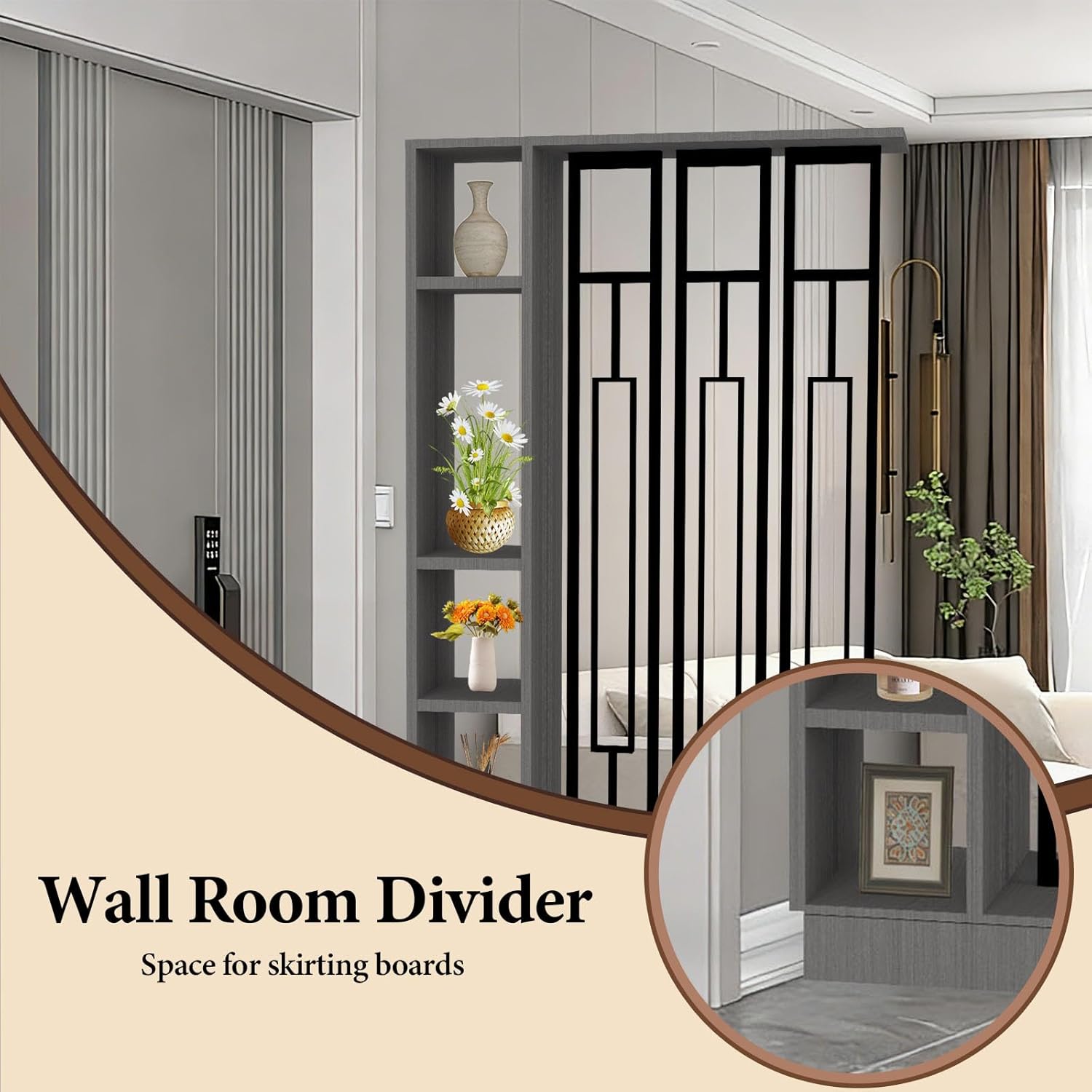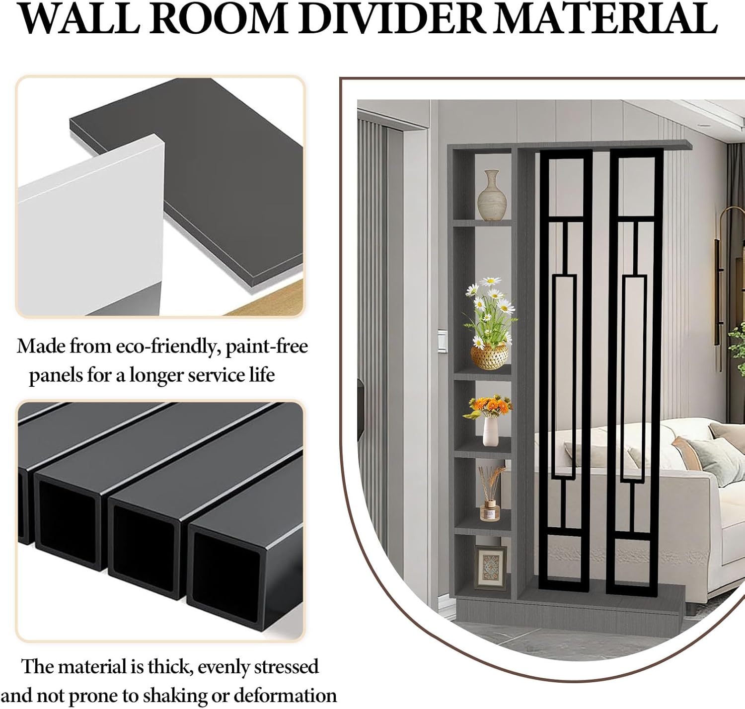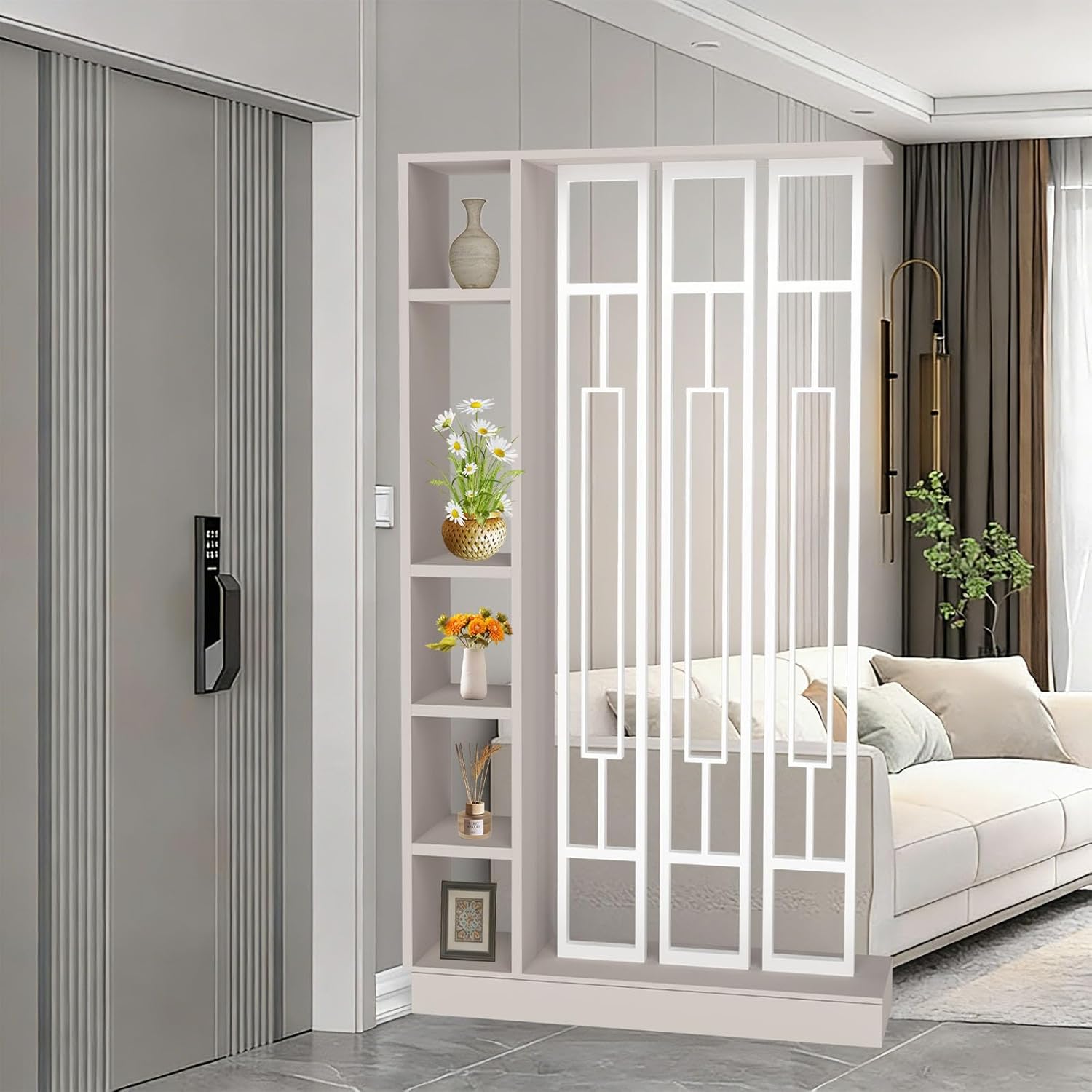 Transform any area instantly with our premium Room Divider Screen. Expertly crafted to be both a stunning decorative accent and a highly practical Divider with Storage, it offers the perfect blend of beauty, privacy, and smart organization. This functional Partition is ideal for creating an elegant Entrance Hall Partition, defining a cozy reading nook, or separating a studio apartment. As a sophisticated Hall Partition Screen, it delivers durability, style, and effortless flexibility for modern living. Whether used as a standalone Screen or a multi-functional Divider, this piece adapts seamlessly to your evolving space needsProduct Specifications:Product Name: Modern Multifunctional Room Divider with StoragePrimary Use: Space Division, Privacy Screen, Display & Storage CabinetIdeal For: Living Room, Bedrooms, Home Office, Entryway, Studio Apartment, Hotel, Rental UnitAvailable Colors: White+Black | White+White | Gray+Black | Gray+White | Khaki Gray+Black | Khaki Gray+White | Gray Oak+White | Gray Oak+BlackAvailable Sizes (L × W × H):31.5″ × 9.4″ × 79.5″39.4″ × 9.4″ × 79.5″47.2″ × 9.4″ × 79.5″55.1″ × 9.4″ × 79.5″What’s Included:1 × High-Quality Partition Screen Column (Full Assembly)1 × Complete Hardware Kit1 × Easy-to-Follow Instruction ManualWe stand behind the quality and design of our Dividers. If you have any questions, our dedicated customer support team is ready to assist. Experience the perfect fusion of innovative design, robust construction, and hassle-free assemblyNote: Images taken from different angles (front or side), in different settings (cosy or stylish), with different equipment (mobile phone or DSLR) and at different times of day (morning, midday or night) may vary; colour differences in the images are to be expected. Please refer to the actual product