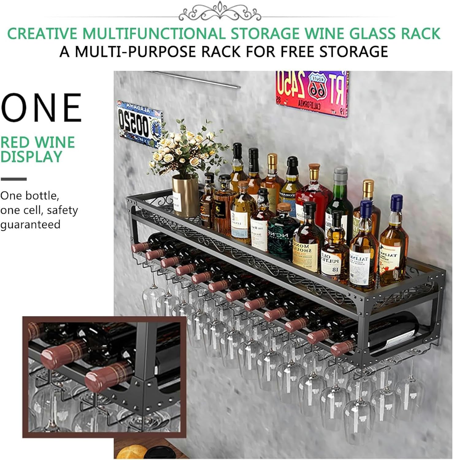 LARGE STORAGE SPACE - The wall wine rack is designed to be very compact yet capable of holding a large number of wine bottles. This is great for those who have a collection of wine or a variety of drinks. They make it easy to organize and display your wine bottles, ensuring they are easily accessible without taking up too much space.