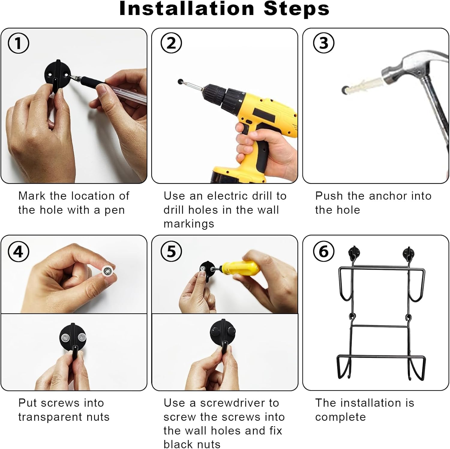| Included Components | 2 hooks, 4*Long screws and 4*expansion tubes, 4*Short screws and 4*expansion tubes. |