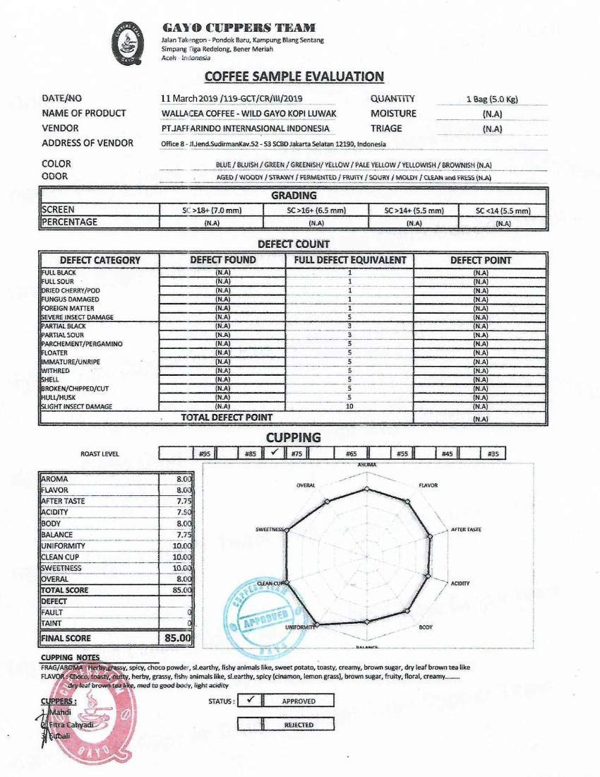 | Region of Origin | Certified Kopi Luwak Roasted Coffee Beans |