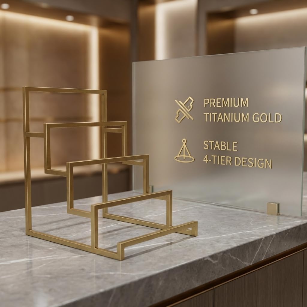 Gold Clutches Handbag Holder Storage Organizer for Bedroom-Metal Purse Wallet Display Stand-4 Divided Sections Closet Shelf for Purses, Clutches, Wallets, Accessories