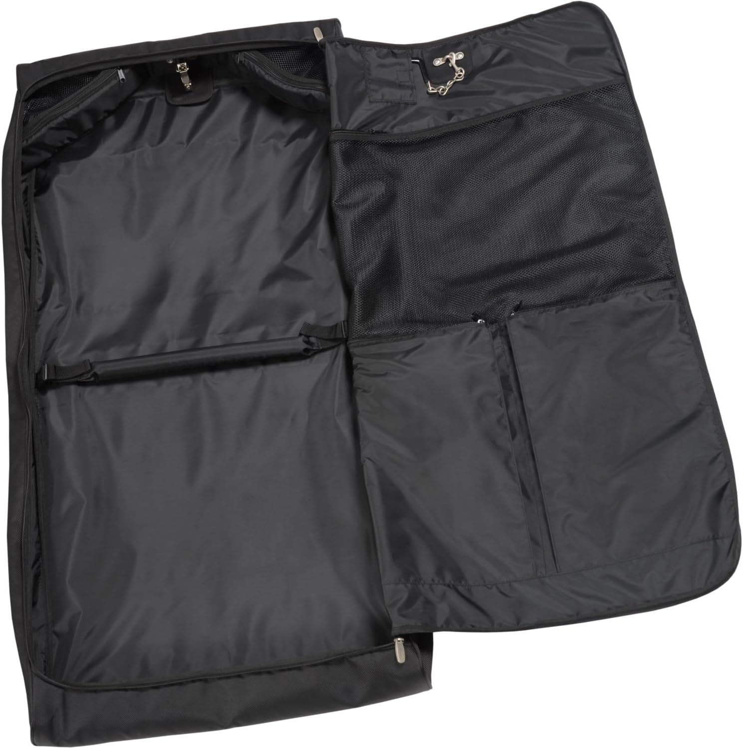 Arrive at your destination ready for any occasion! Great for business travel, long weekend trips, special events and more. Various pockets offer additional storage for shoes, toiletry kit and other accessories. Clothes stay neat and wrinkle-free in this lightweight and easy to carry travel bag with WallyLock hanger clamping system. The 3” interior WallyLock holds up to 6 hangers and secures them at the top of the bag. Comfortable, adjustable shoulder strap allows for hands-free carrying. Two removable hanging hooks make it easy to hang your garment bag in a closet or on a clothes rack. Conveniently fits in the overhead bin for most airlines or can be checked as luggage. Durable twill polyester fabric is water repellent, providing all weather protection. Our premium garment bags can be monogrammed or personalized at your local embroidery shop to create a unique travel bag made just for you. Covered by a 10 Year Warranty.