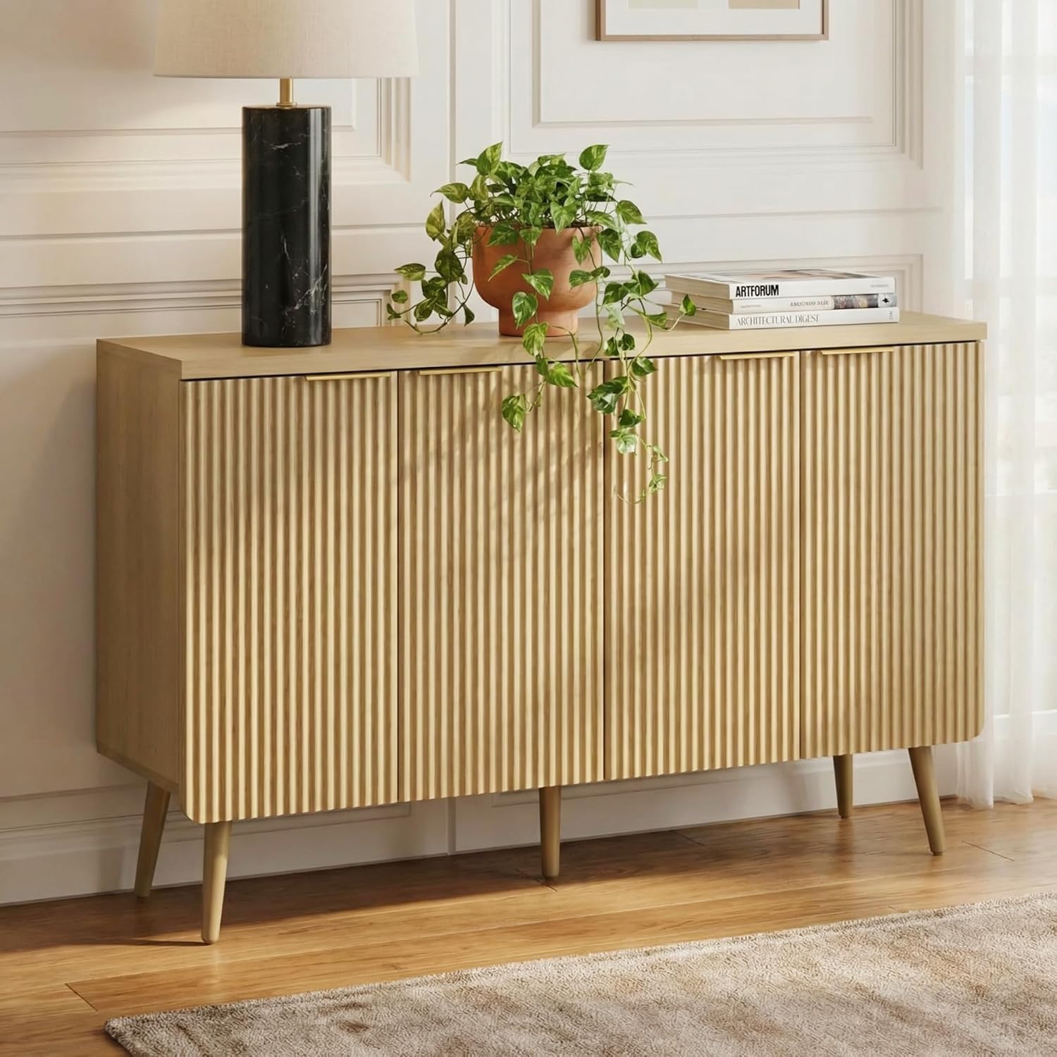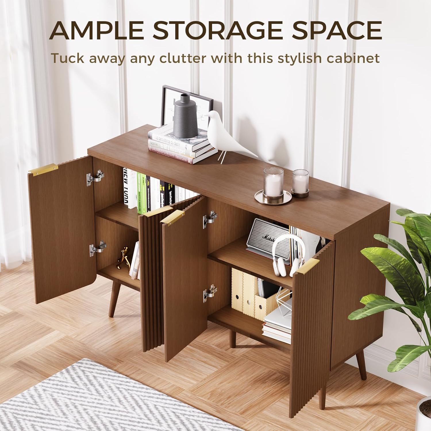 Trygoal Walnut 47.2" Modern Fluted Wood Sideboard – 4-Door Buffet Cabinet with Adjustable Shelves, Multi-Space Storage Credenza for Living Room, Dining Room & Entryway