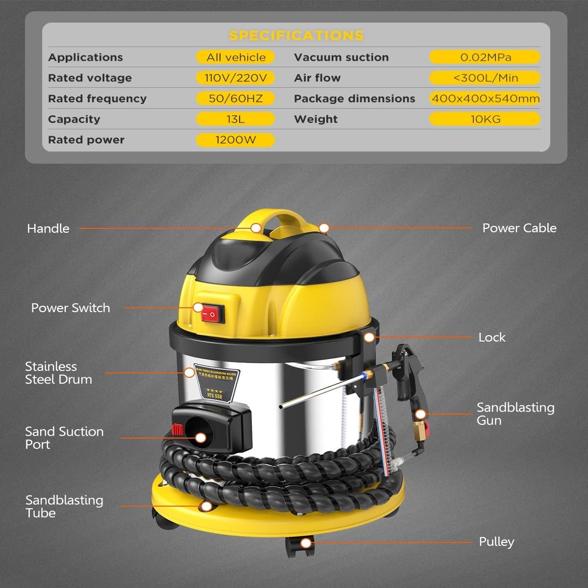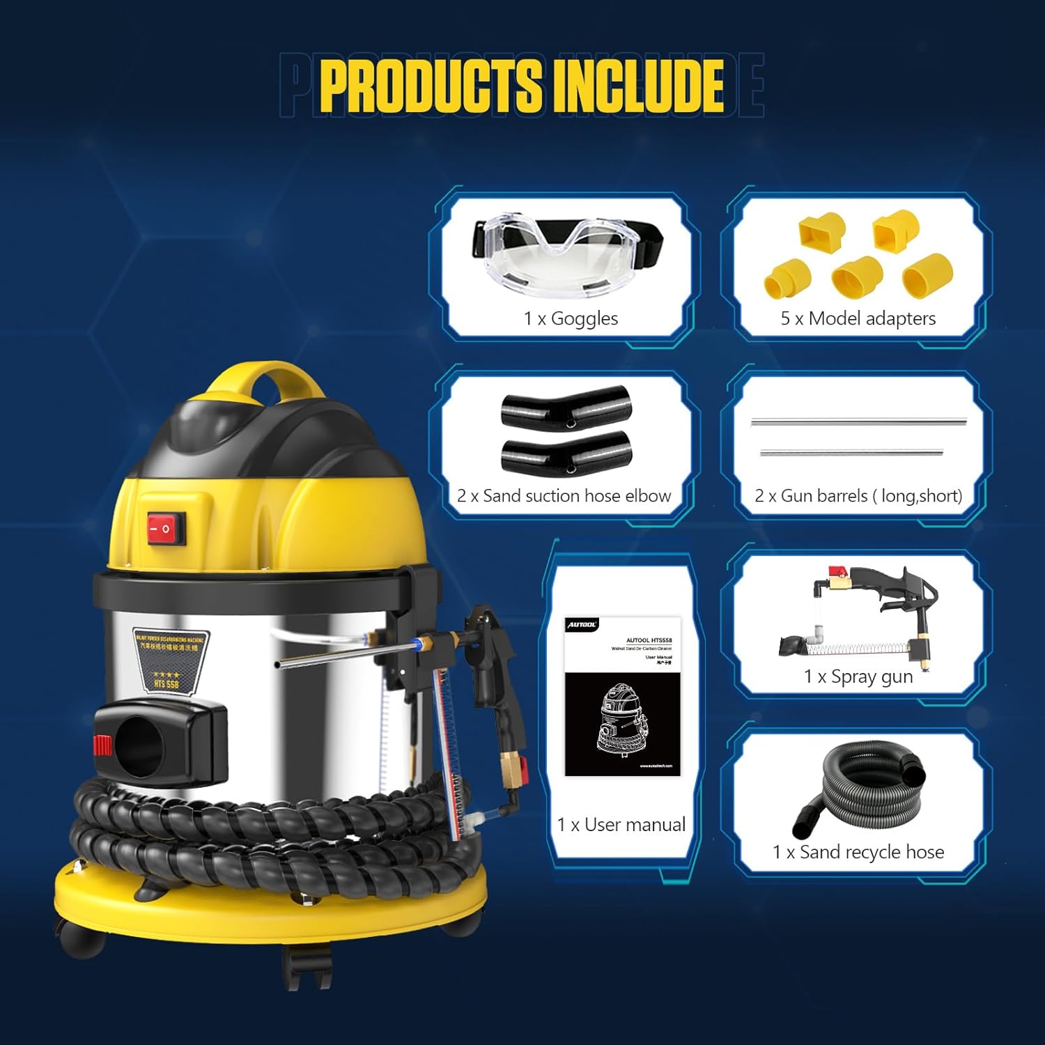 | Included Components | 1x Walnut Sand DE-Carbon Cleaner Machine, 2x Spray gun |