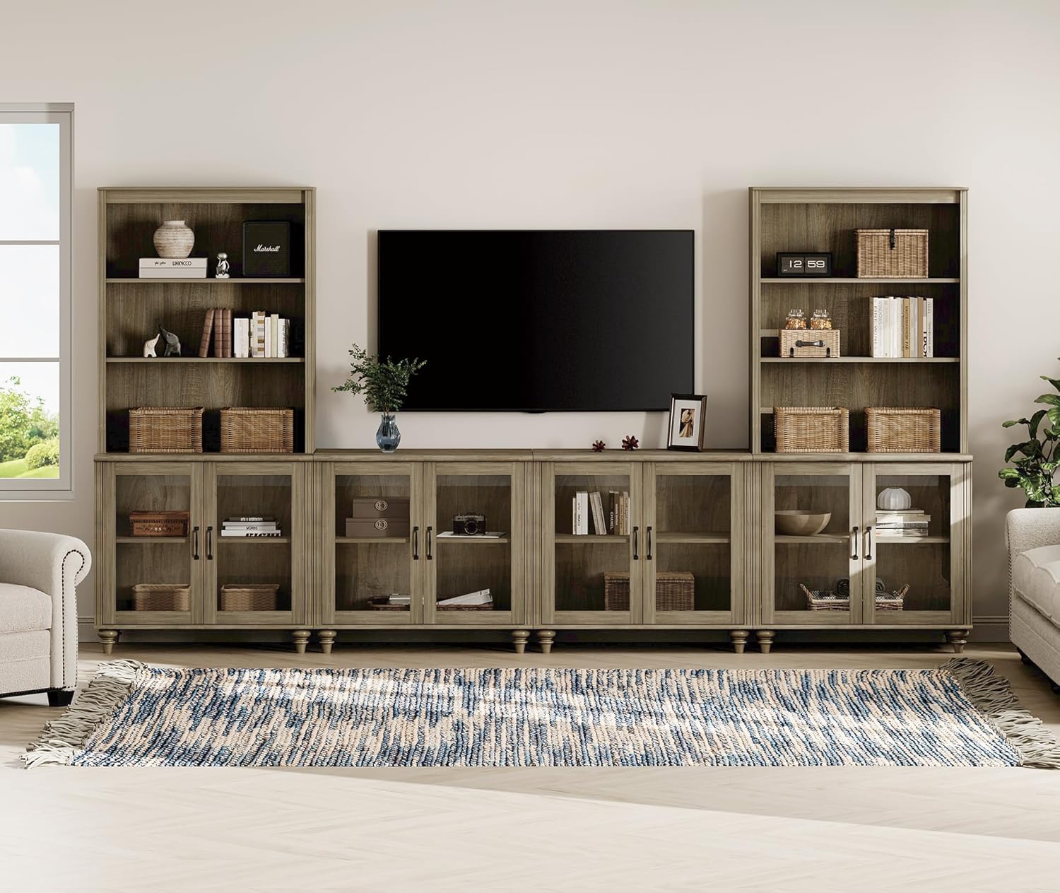| Included Components | Bookcasex2, Buffet Cabinetx1, Glass Cabinetx2 |