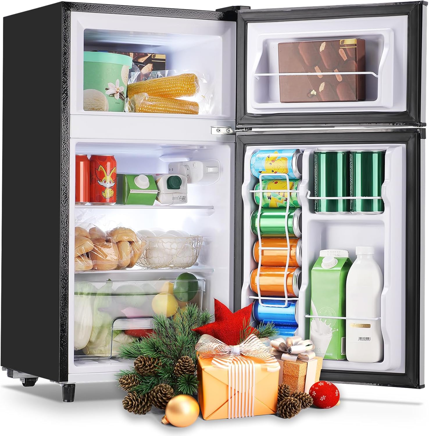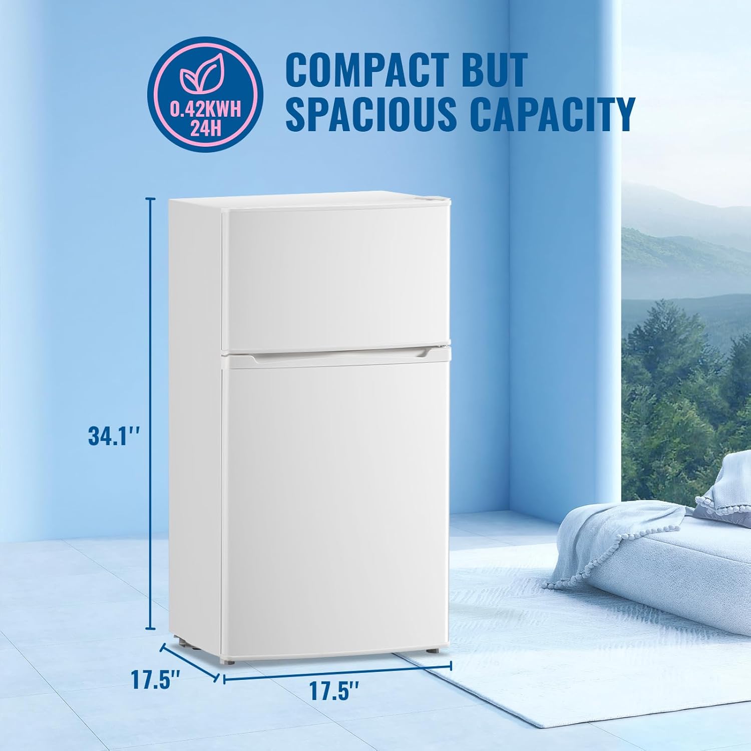 WANAI Small Refrigerator with Freezer Mini Fridge Small Size with 7 Adjustable Temperature Control White