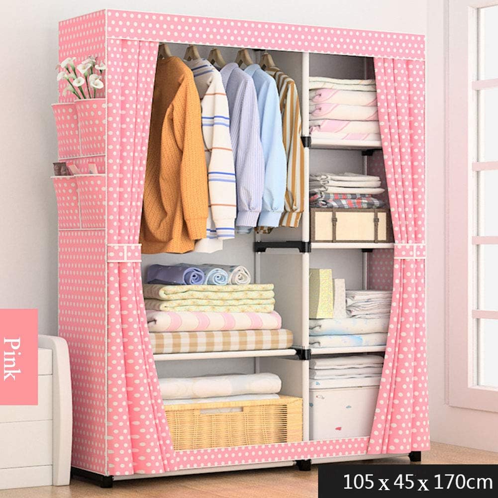 Are you looking for additional closet storage for your home, office, garage, etc? Well you‘re looking at the right product, Just keep reading.Specifications:- Color: Pink- Material: Iron, Non-woven Fabric, PP- Assembly Required: Yes- Size: 105x45x170cm / 41x17x66inPackage Contents:- 1 x Clothes Wardrobe- 1 x InstructionsEASY CLEANING AND MAINTAINING:You don‘t need to frequently polish or paint this Organizer Storage. You can simply remove the fabric from its frame and wash it.Notes:- Do not leave the product exposed to the sun for an extended period of time which will shorten its service life. Please keep this wardrobe in a cool, dry place to avoid molding.
