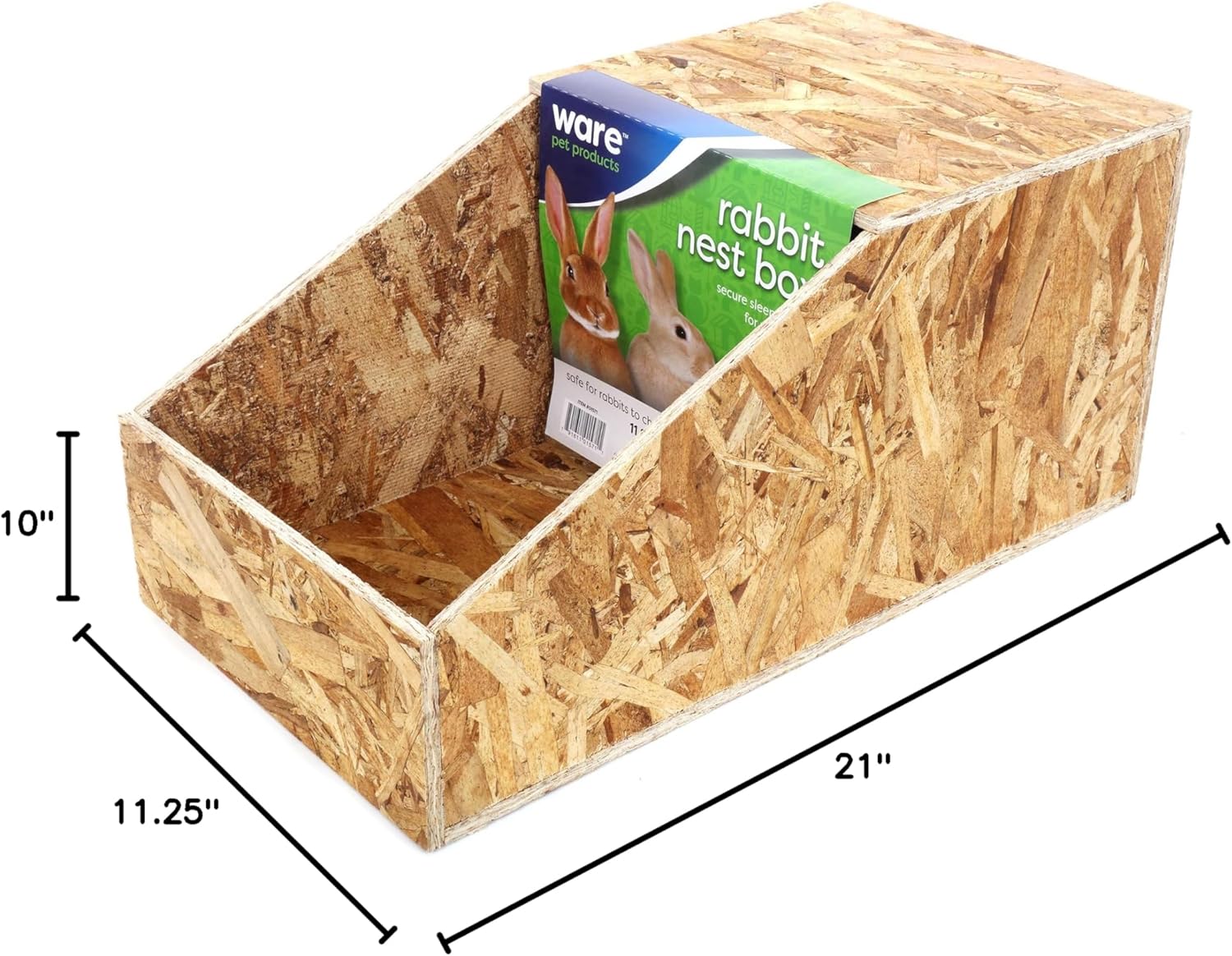 Ware Manufacturing's Wood Nesting Box is the perfect choice for your rabbit or small pets new nesting spot. Featuring top grade durable lumber and high quality construction this nesting box is built to last. This nesting box is safe for pets, featuring unstained wood which makes this box safe to chew for all pets. Ware Manufacturing's Nesting Box is the perfect spot for your pets to rest and next. Comes fully assembled and Made in the USA. Measures 11.25-inch Width X 21-inch Depth X 10-inch Height